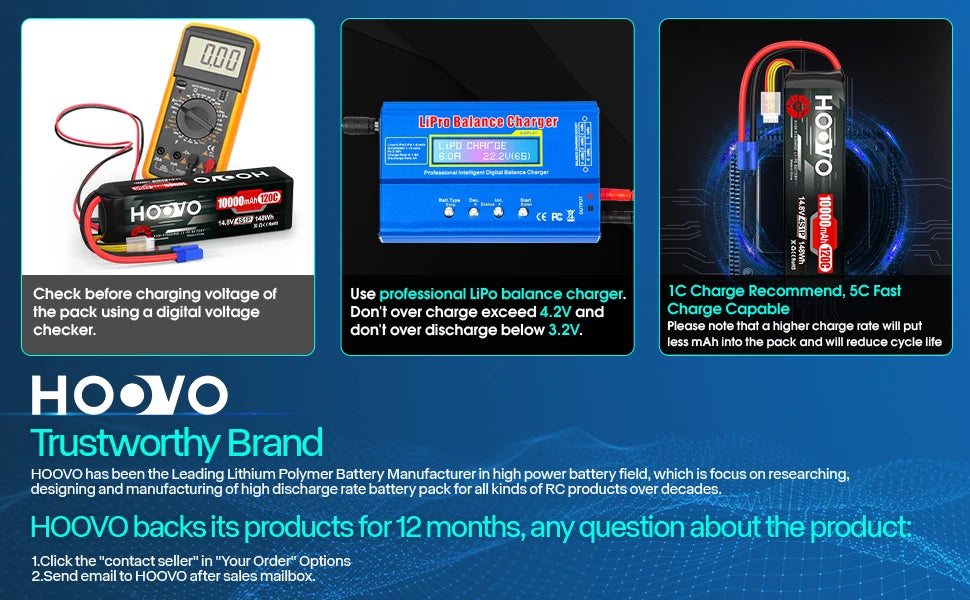 HOOVO 2Pcs 4S Lipo Battery 14.8V 10000mAh 120C Soft Case RC Battery EC5 Plug for RC Cars Drones DJI FPV RC Plane Racing Hobby