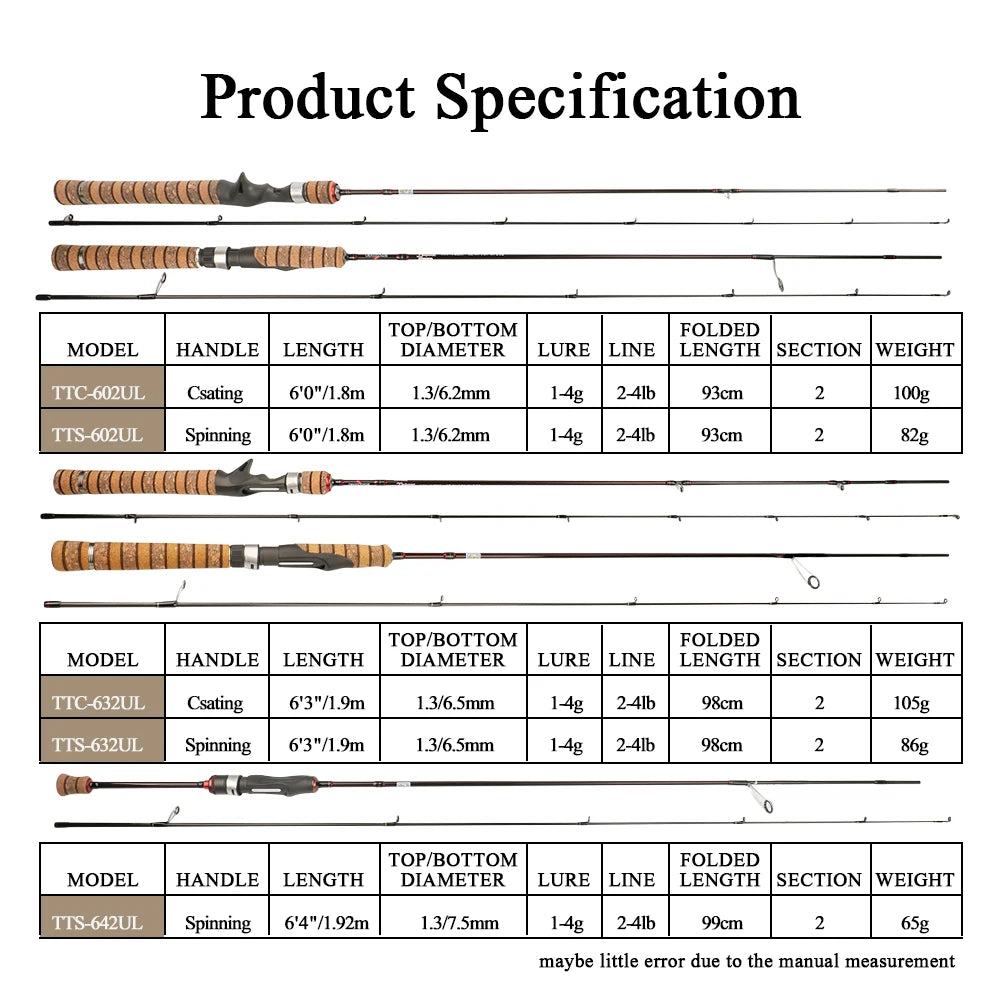 KUYING TETON 1.56m 1.8m 1.86m 1.9m 1.92m 1.98m Super Ultra Soft Light Baitcasting Casting Spinning Lure Fishing Rod Pole Combo