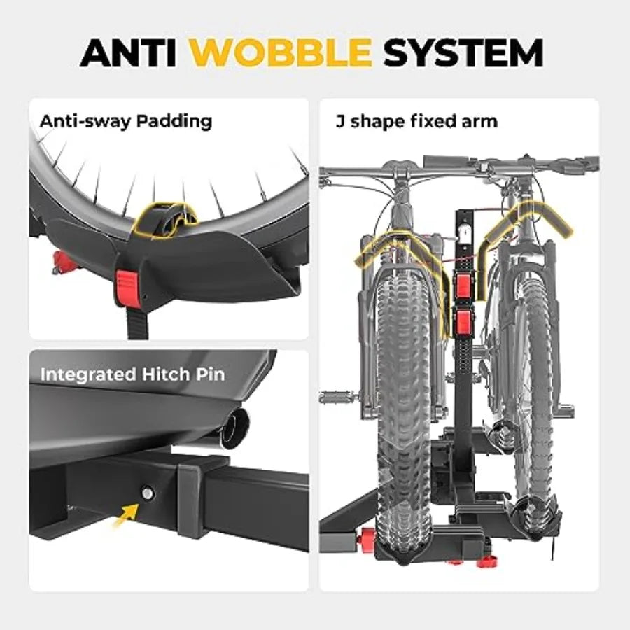 Lockable Hitch Mount Bike Rack Platform 2Bike Carrier for SUV Truck Lightweight EBike Compatible Foldable Tilting to Open Trunk