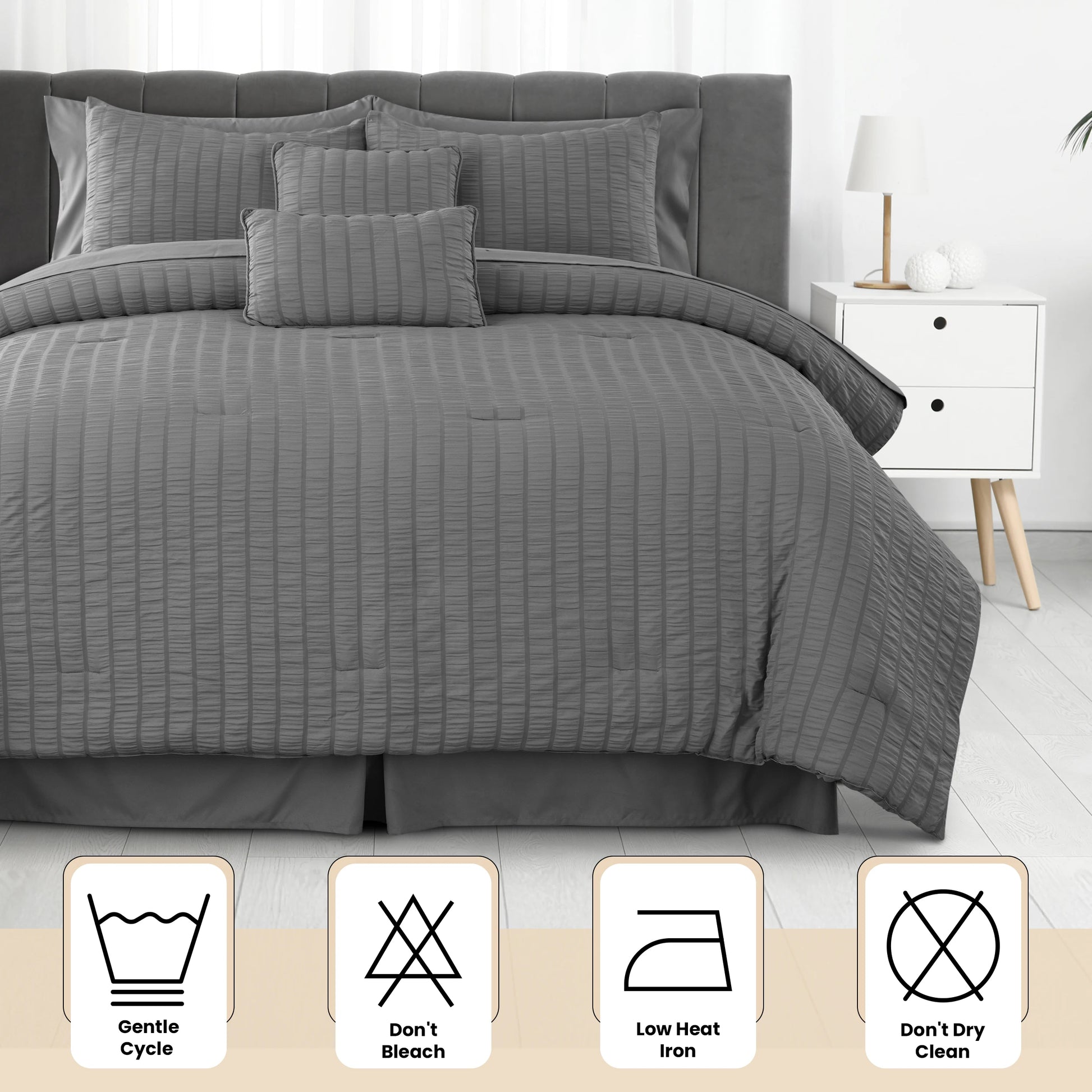 Lux Décor 10-Piece Comforter Set – Seersucker Lightweight Bedding with Sheets, All-in-One Bed-in-a-Bag for Year-Round Comfort
