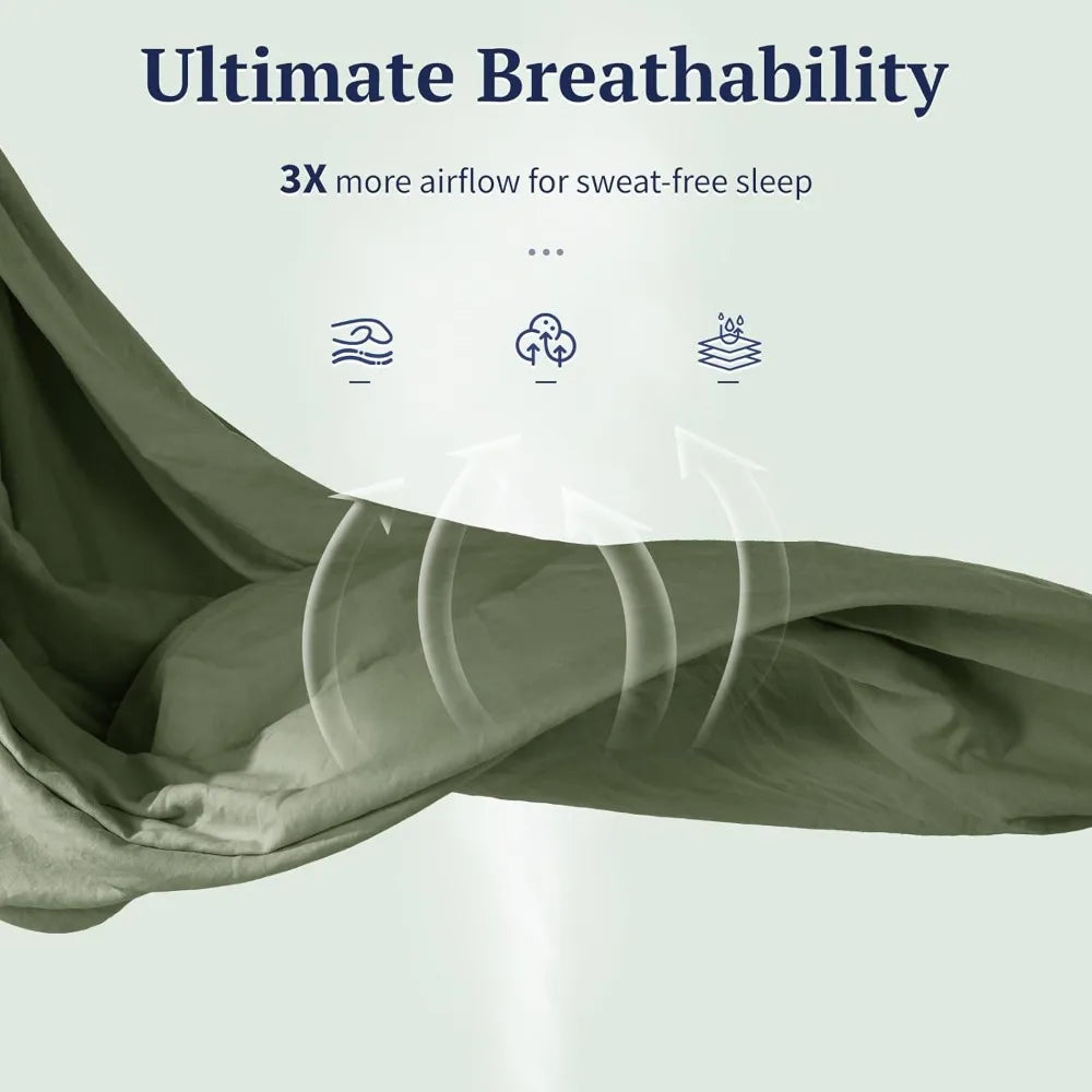Luxury Queen Size Linen Duvet Cover Set, Pure Natural Flax Linen with Zipper and Corner Ties