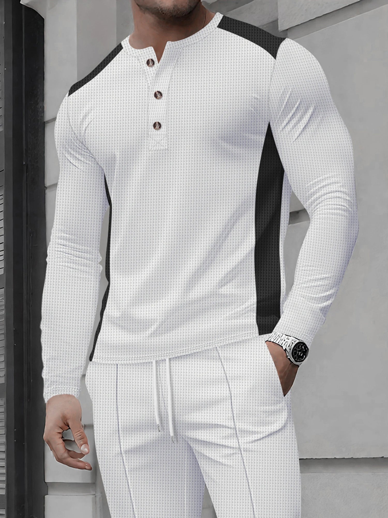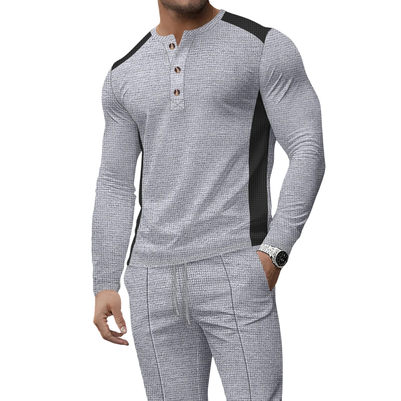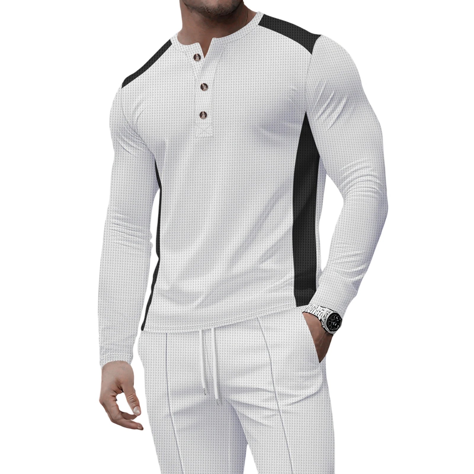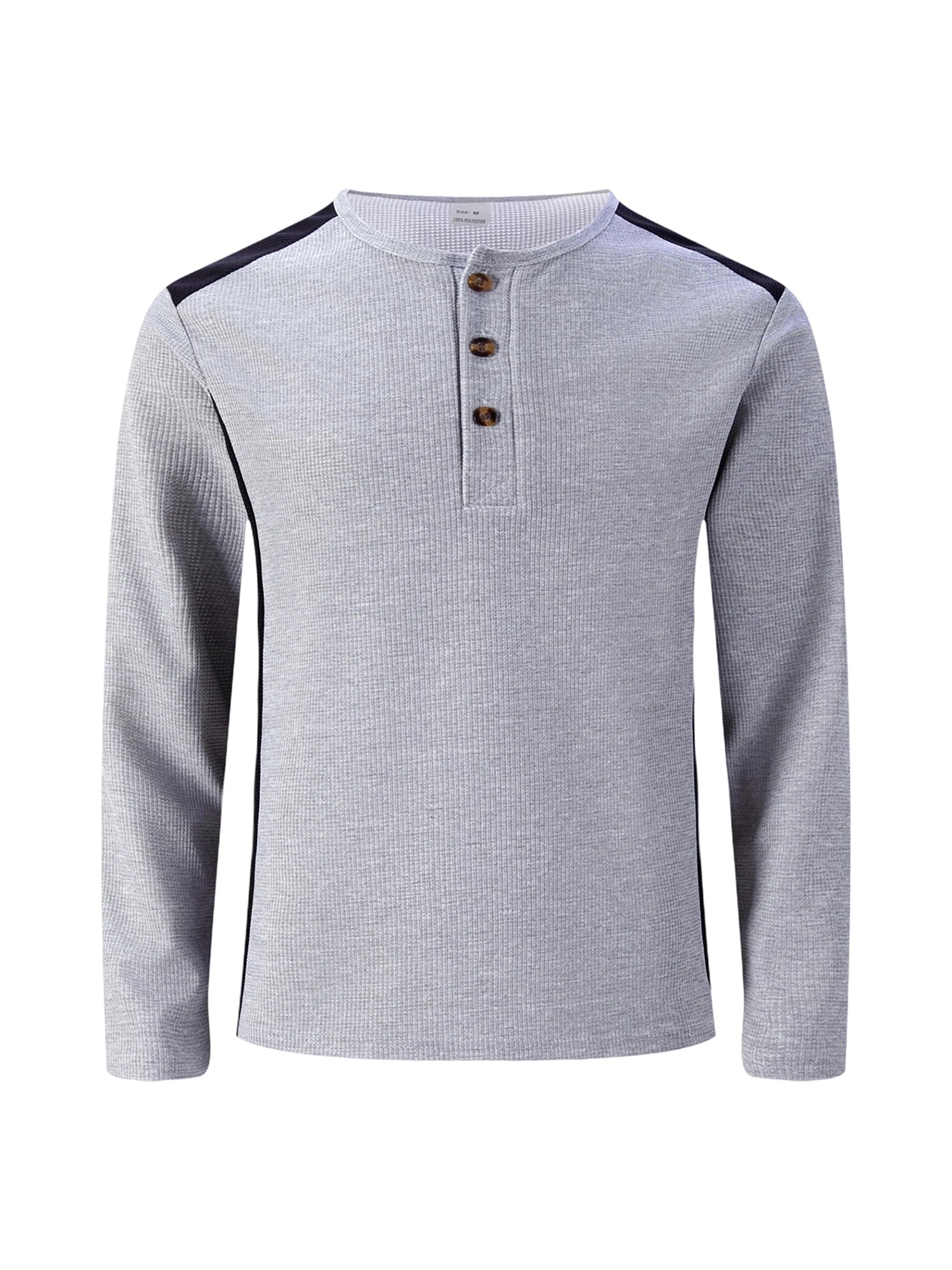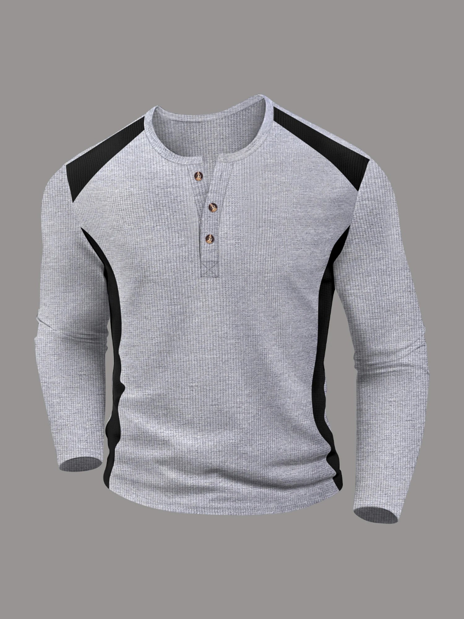 Men s Casual Fit Long Sleeve Henley T-Shirt Button Up Contrast Color Tops Spring Autumn Fashion Pullover Shirt