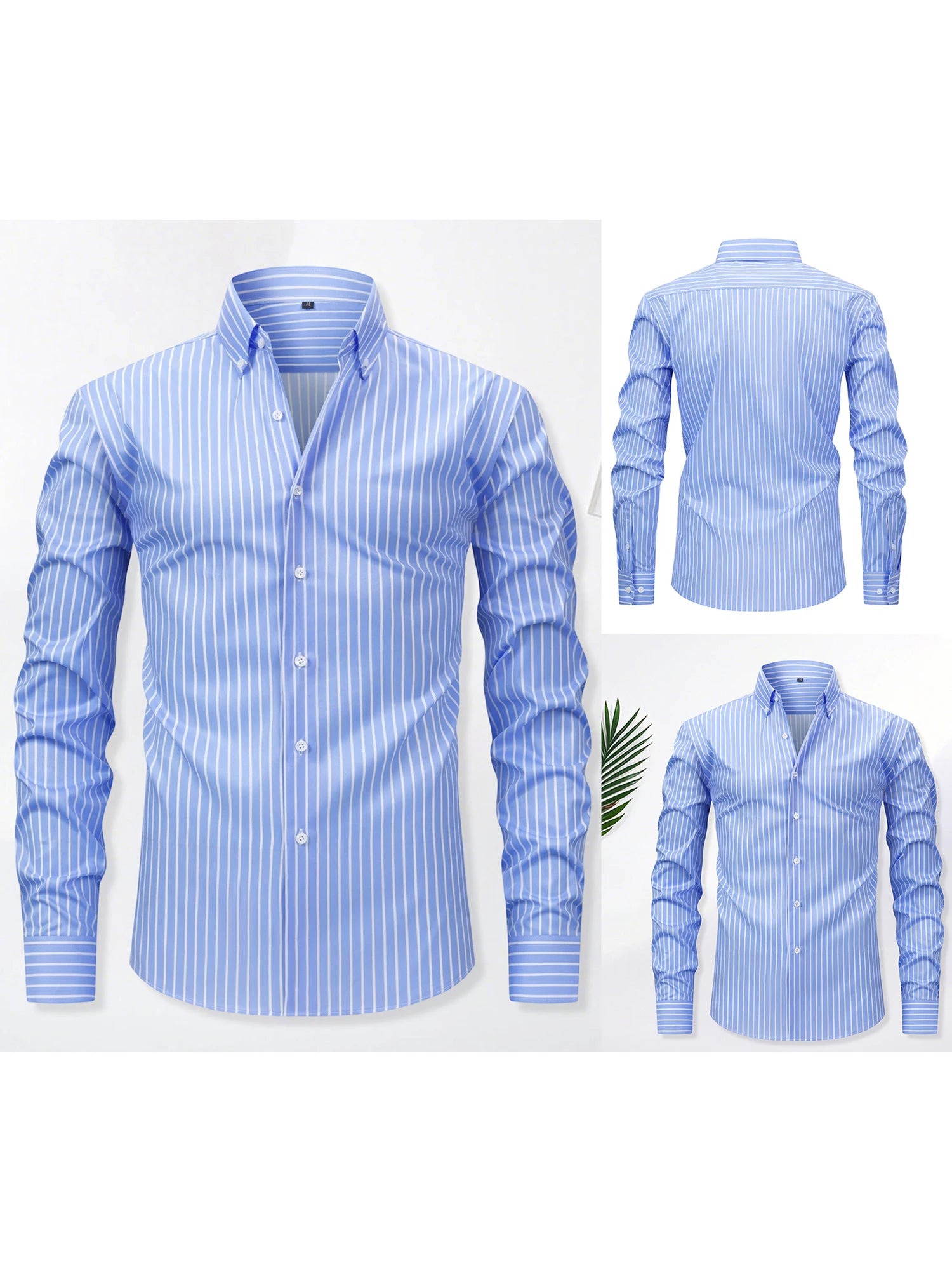 Men s Classic Striped Shirt with Long Sleeves and Turn Down Collar Perfect for Spring and Autumn Casual Wear Featuring Button