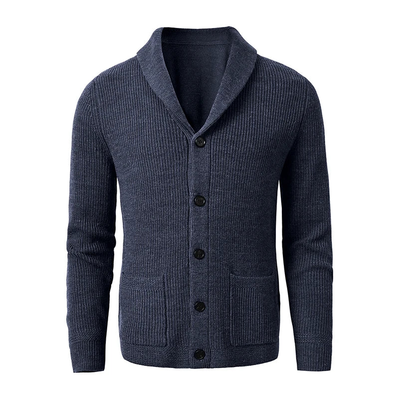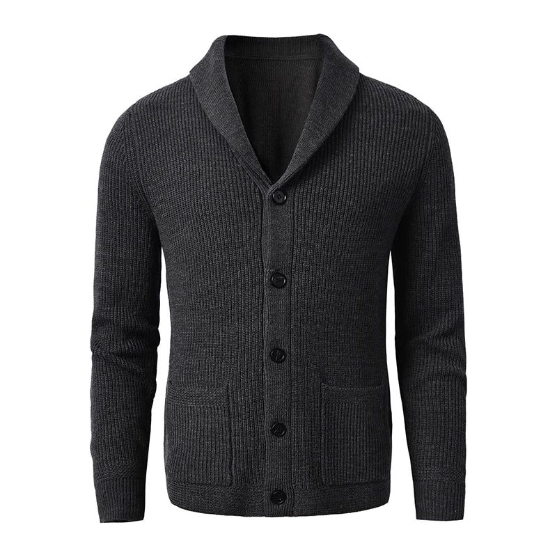 Men's Shawl Collar Cardigan Sweater Slim Fit Cable Knit Button up Black Merino Wool Sweater