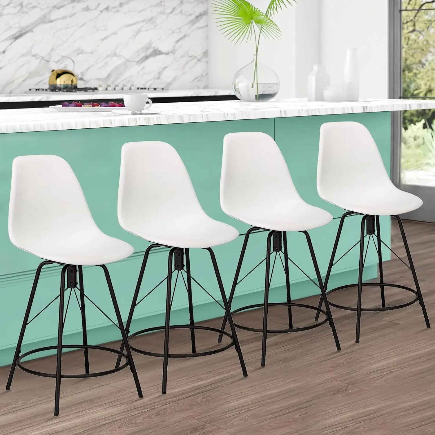 Metal Bar Stools, Counter Height Stools Plastic Seat Swivel Chairs Set of 4 for Indoor, Outdoor, Home, Kitchen Dinning Chairs