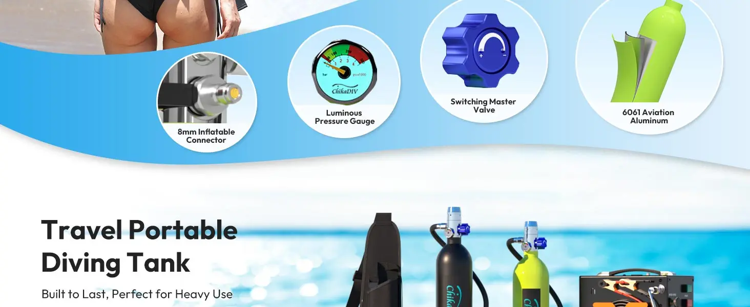 🛡️ Aerospace-Grade Durability: Engineered with corrosion-resistant 6061 aviation aluminum and high-pressure specifications, this scuba tank ensures safety and longevity for underwater exploration, boat inspections, or shallow dives (10m primary/30m backup).