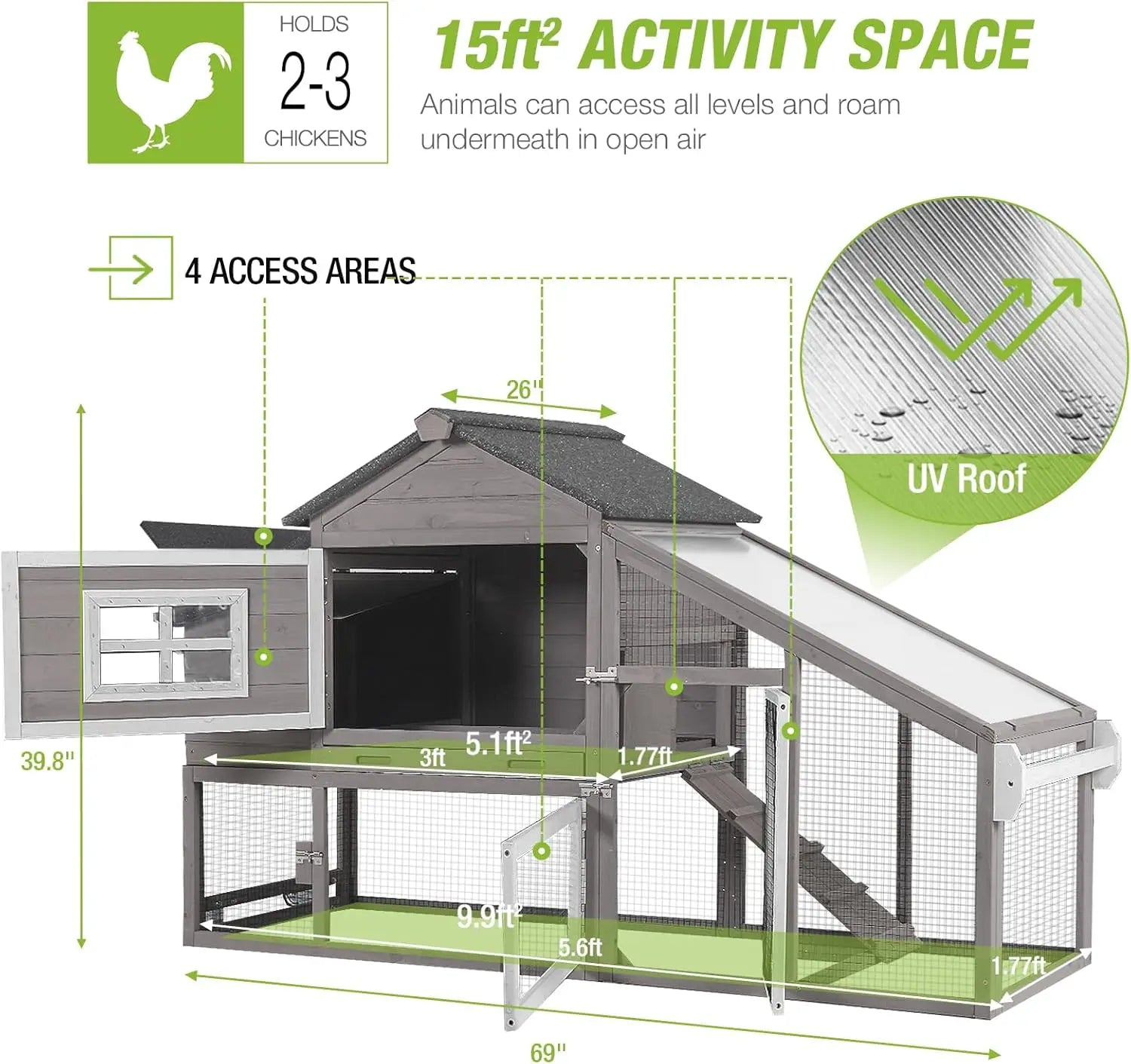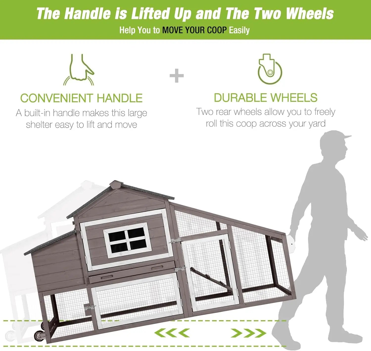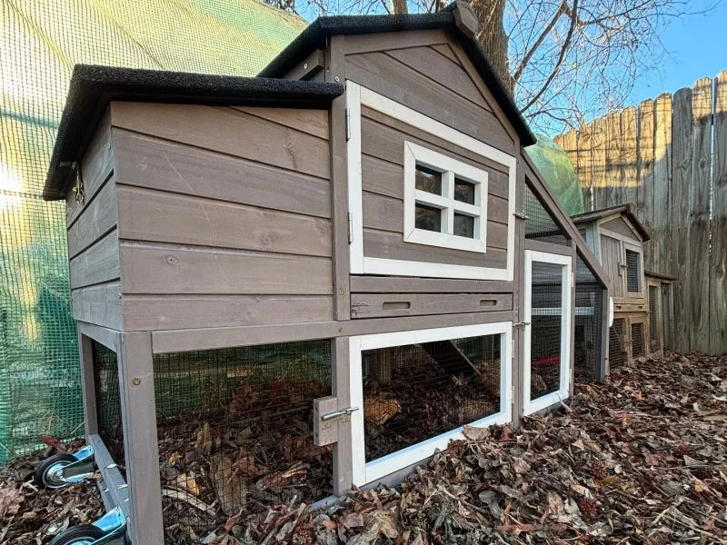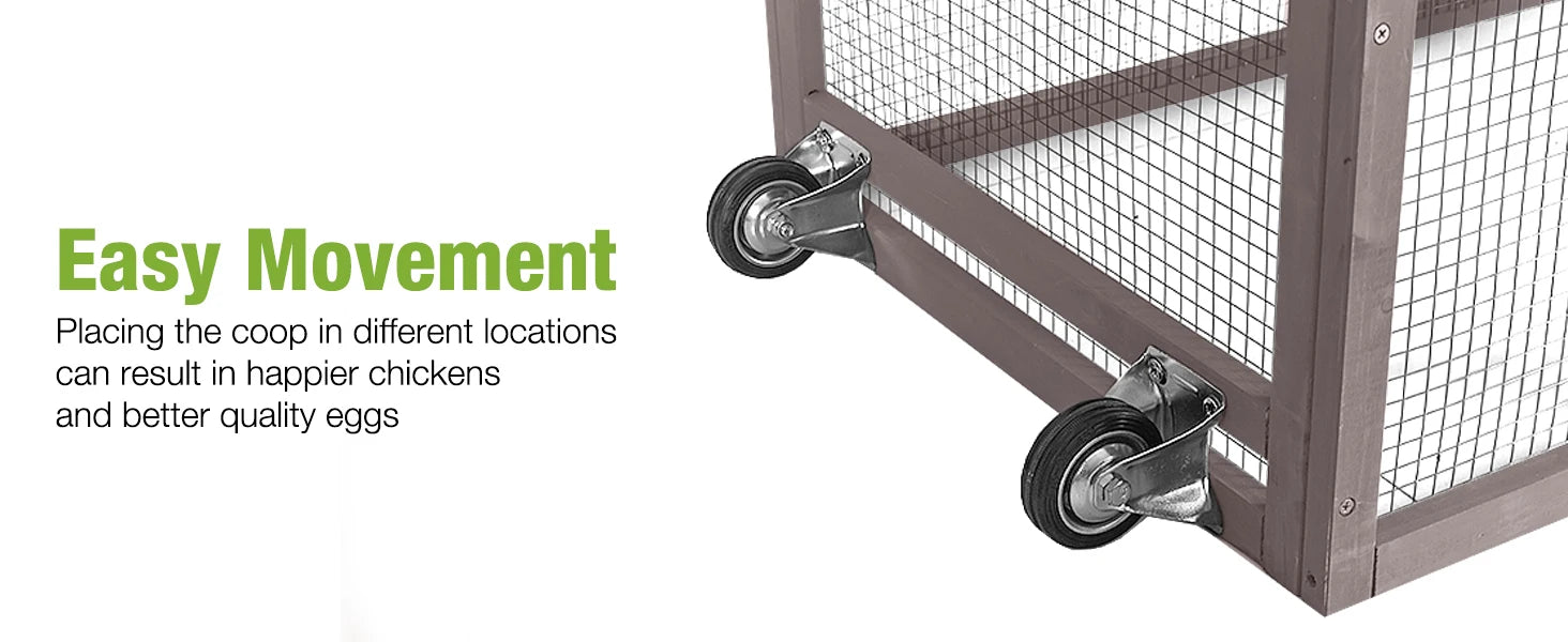 Mobile Chicken Coop with Wheels Expandable Chicken Tractor Outdoor Hen House for 2-4 Chickens 67.3" L(Brown)