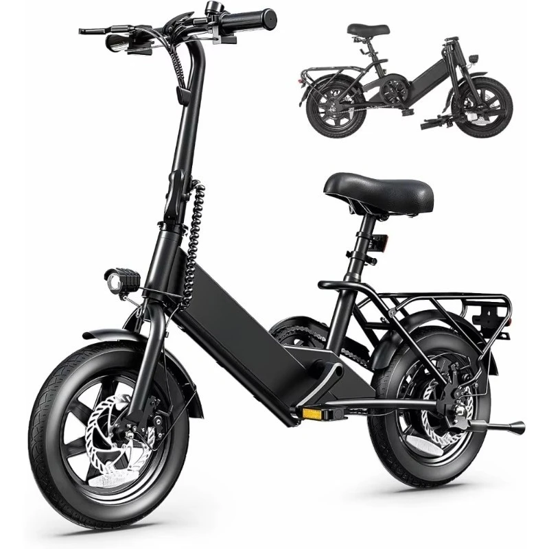 Commuter City E-Bike with 350W Motor and 36V 7.5Ah Battery,3 Levels Assist, Dual Disc Brakes,14/16" Foldable ebike with Pedals