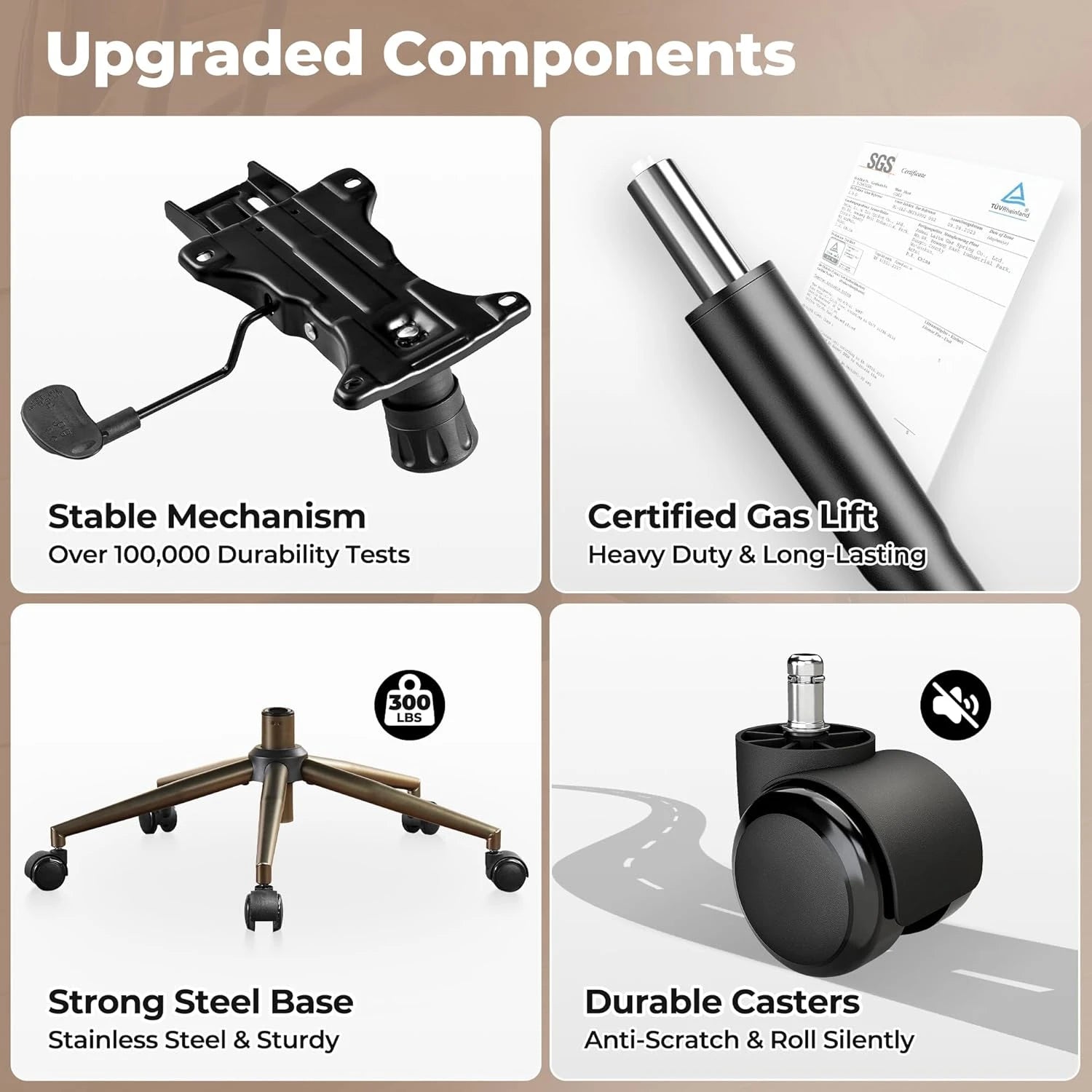 Office Chair, Modern Leather with Lumbar Support, High Back Swivel Rolling with Comfy Thick Cushion (Brown, Suede Faux Leather)