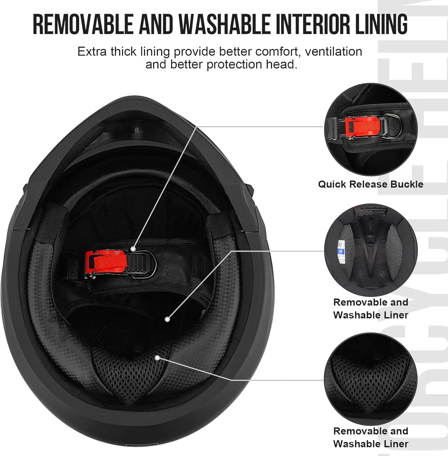 Open Face Motorcycle Helmet for Unisex-Adult Dirt Bike ATV Scooter Cruiser Full Face Motocross Helmet Interchangeable Mouth Cove