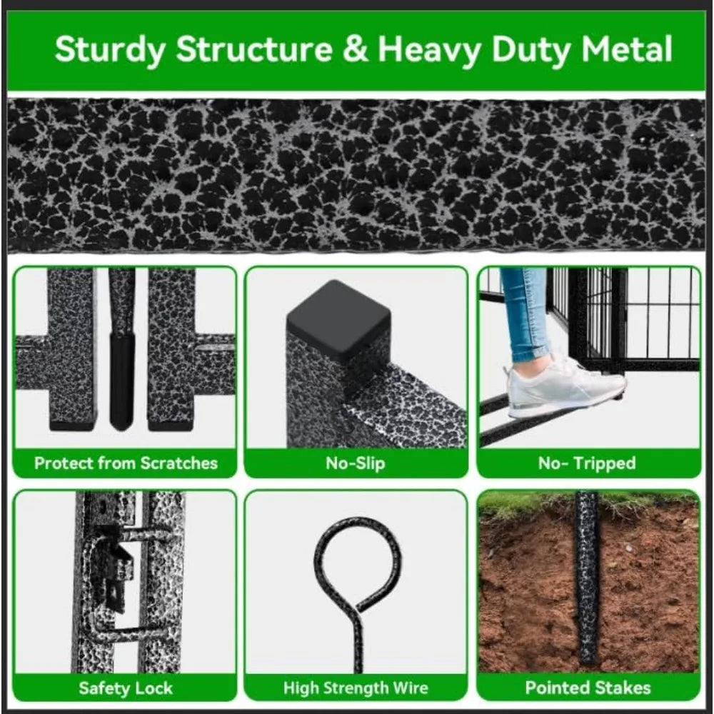 outdoor extra wide 32-panel heavy duty anti-rust dog fence with door, portable for rv, camping, and yard use