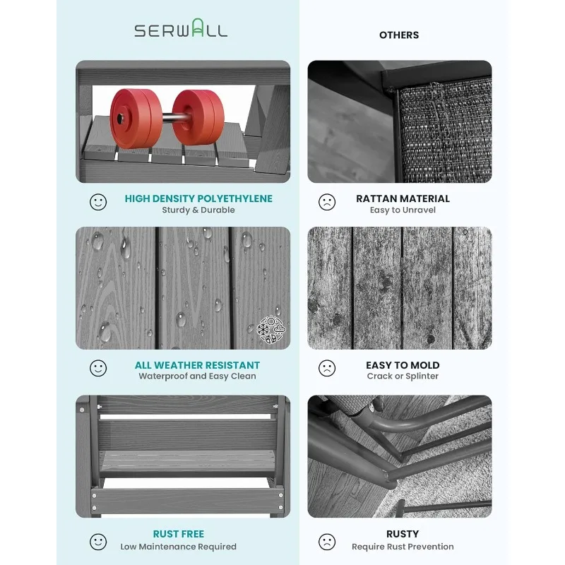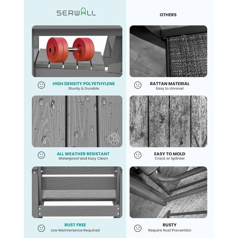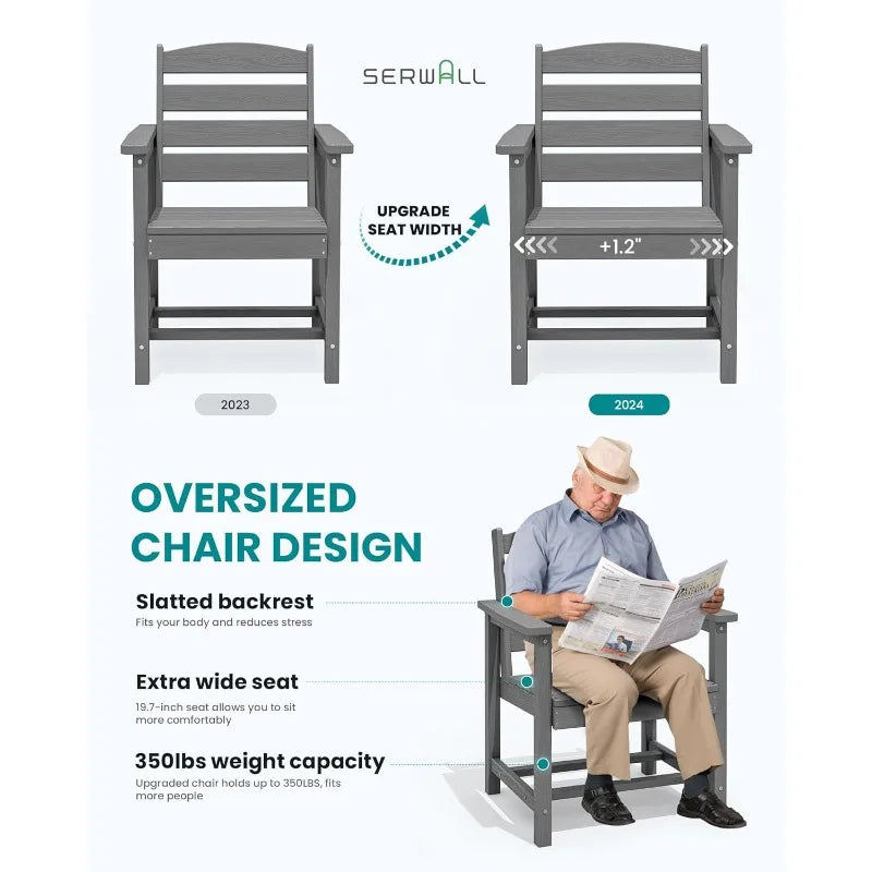 【All Weather Use】SERWALL patio dining sets are built to withstand the elements and provide long-lasting performance. The sturdy frames and high-density polyethylene materials ensure durability and reliability, allowing you to enjoy outdoor dining for years to come.