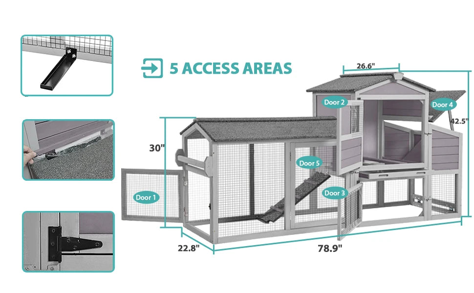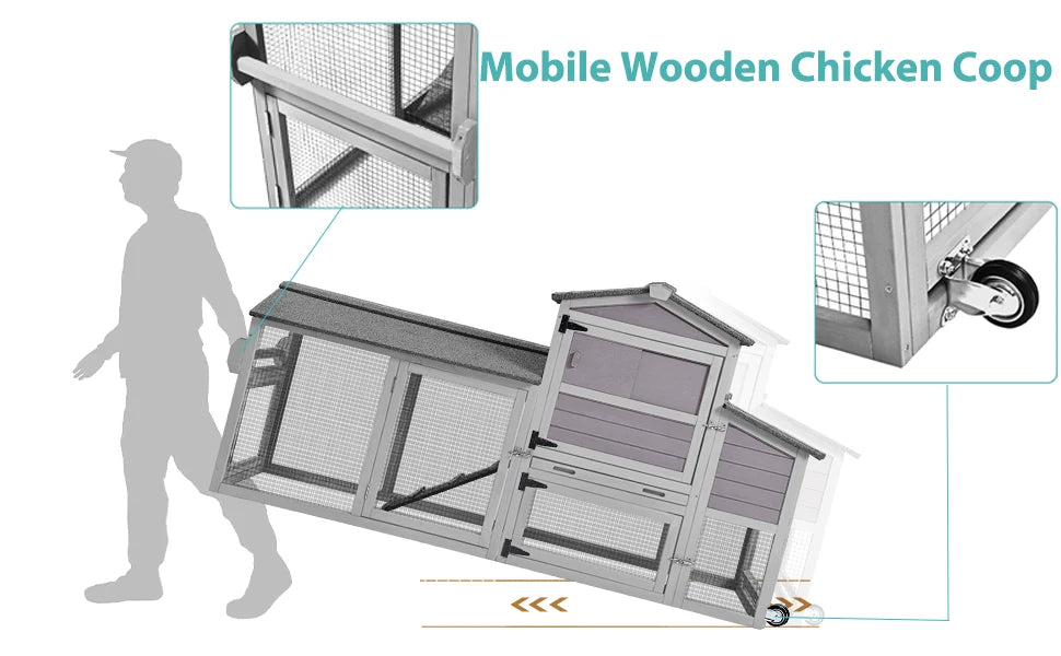 Outdoor Hen House Poultry Cage with Nesting Box, Leakproof Pull Out Tray and UV-Resistant Roof (78.9" L x 26.6" W x 42.5" H)