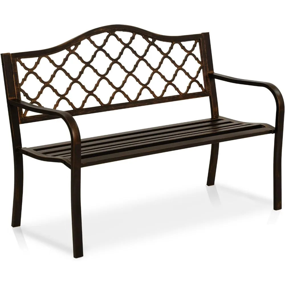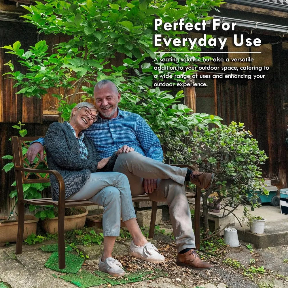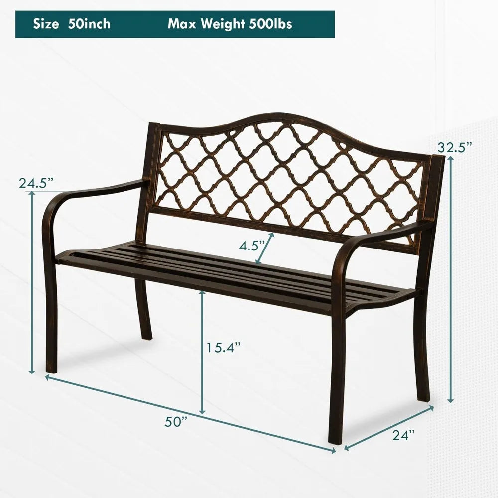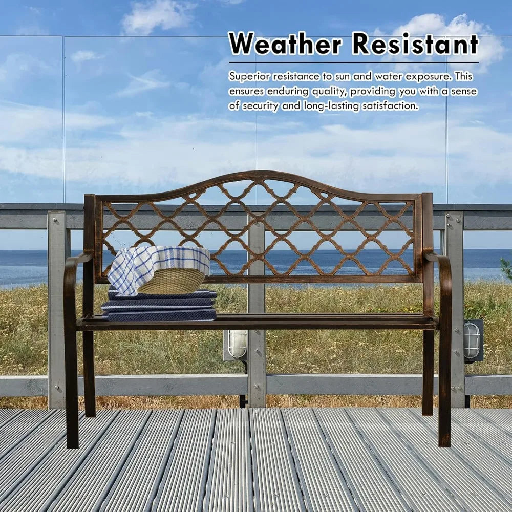 Outdoor Metal Bench, Outdoor Garden Bench with Decorative Backrest, Ideal Outdoor Patio Bench for Yard Porch Lawn & Park - Durab
