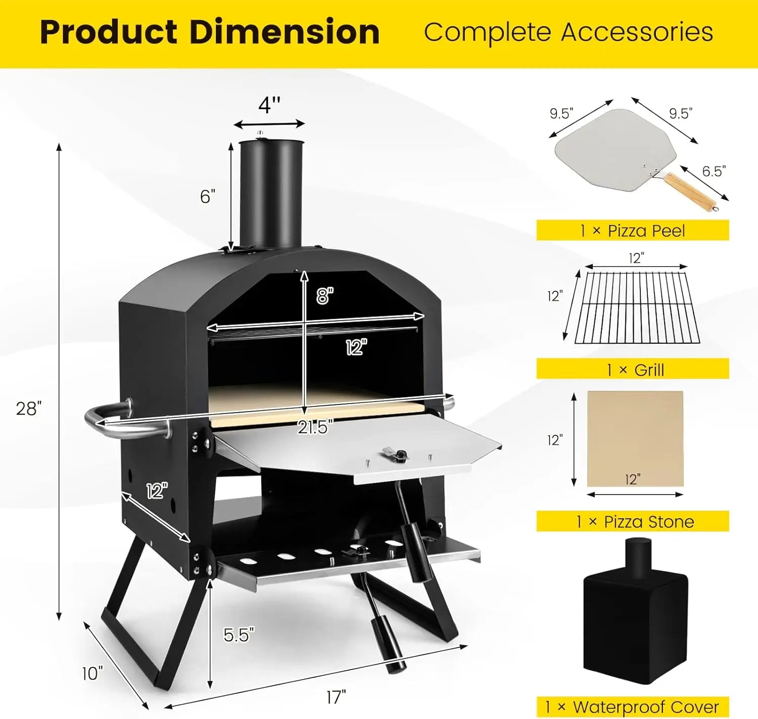 Outdoor Pizza Oven Wood Fired 2-Layer Pizza Maker with Pizza Stone Pizza Peel Removable Cooking Rack Waterproof Cover Folding Le