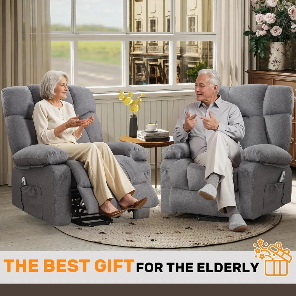 Oversized Power Lift Recliner Chair with Vibration Massage&Heat for Elderly,Classic Upholstered Breathable Fabric Lounge Chair w