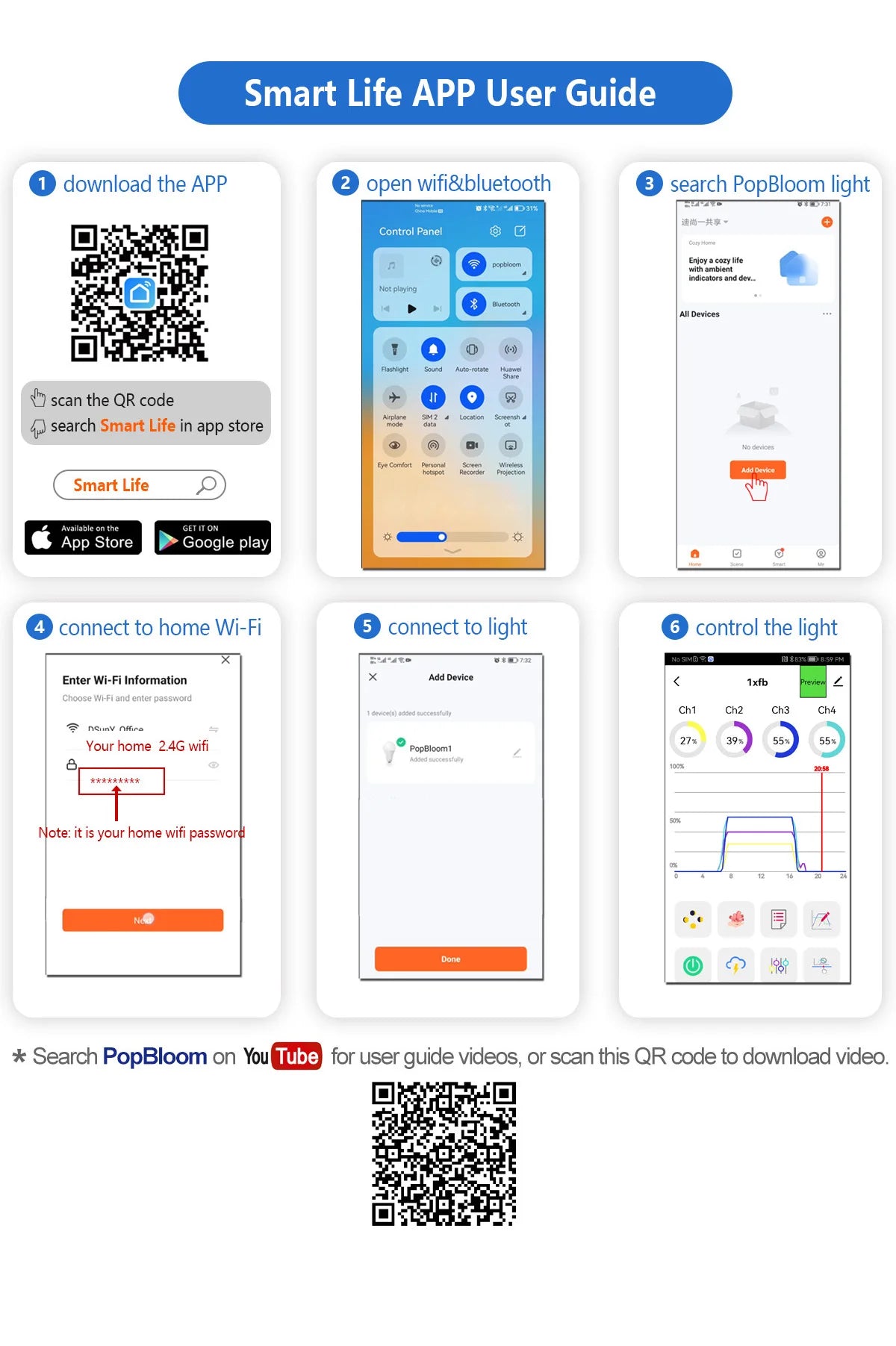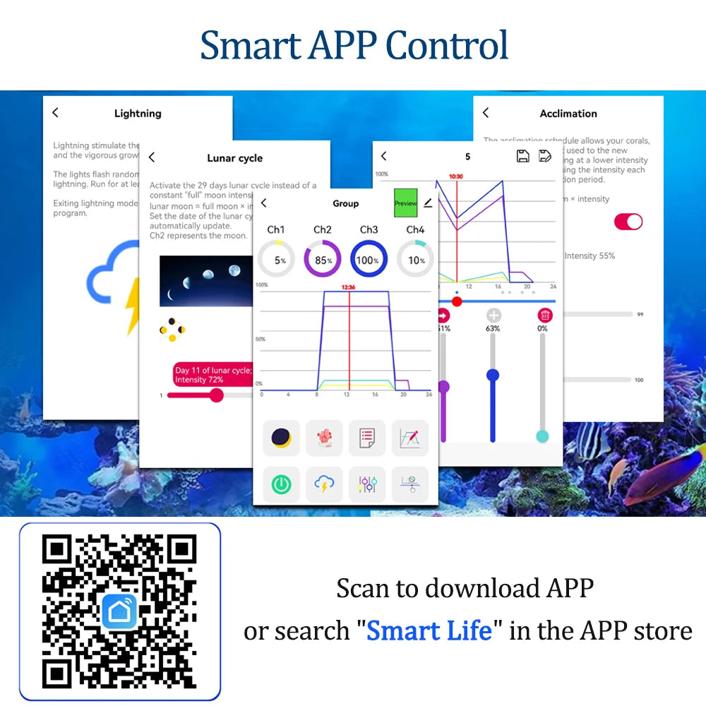 PopBloom WiFi Marine Aquarium Light RL60/RL90, Full Spectrum Aquarium Lamp LED For Coral SPS/LPS Nano Tank, Include Arm Mount