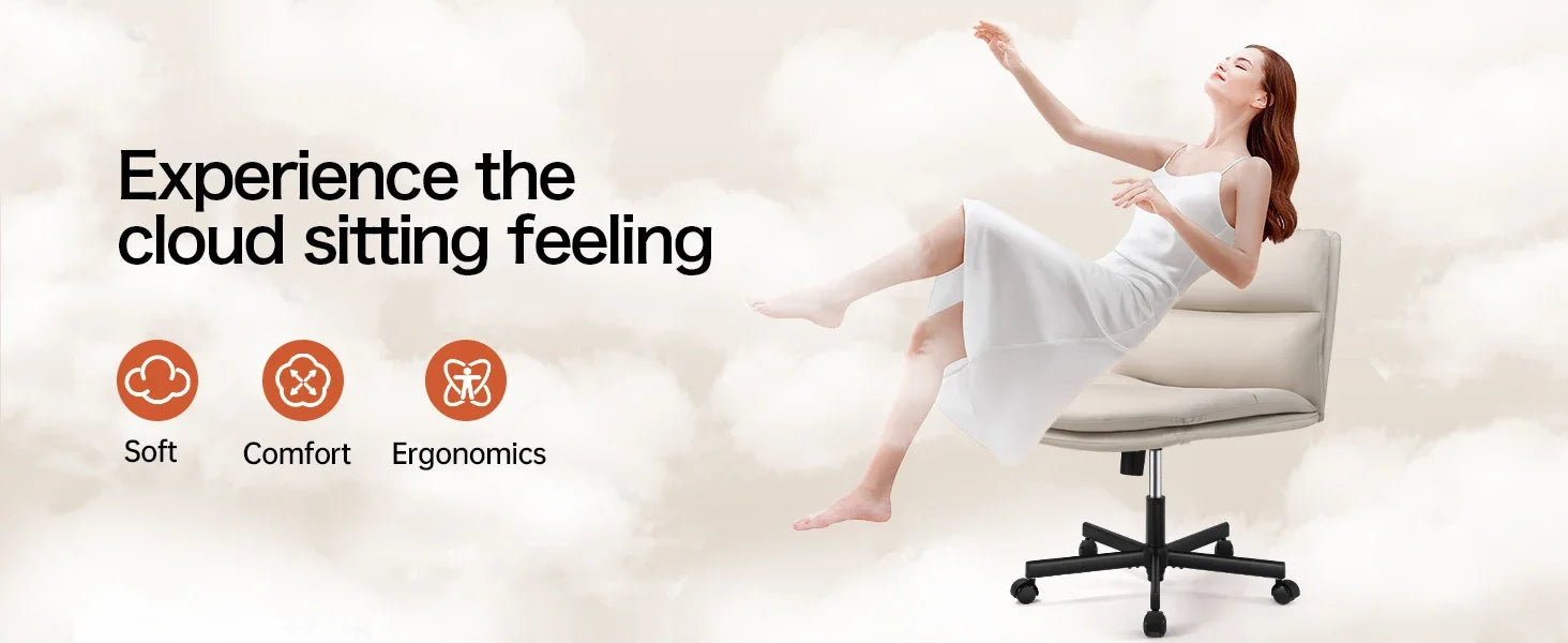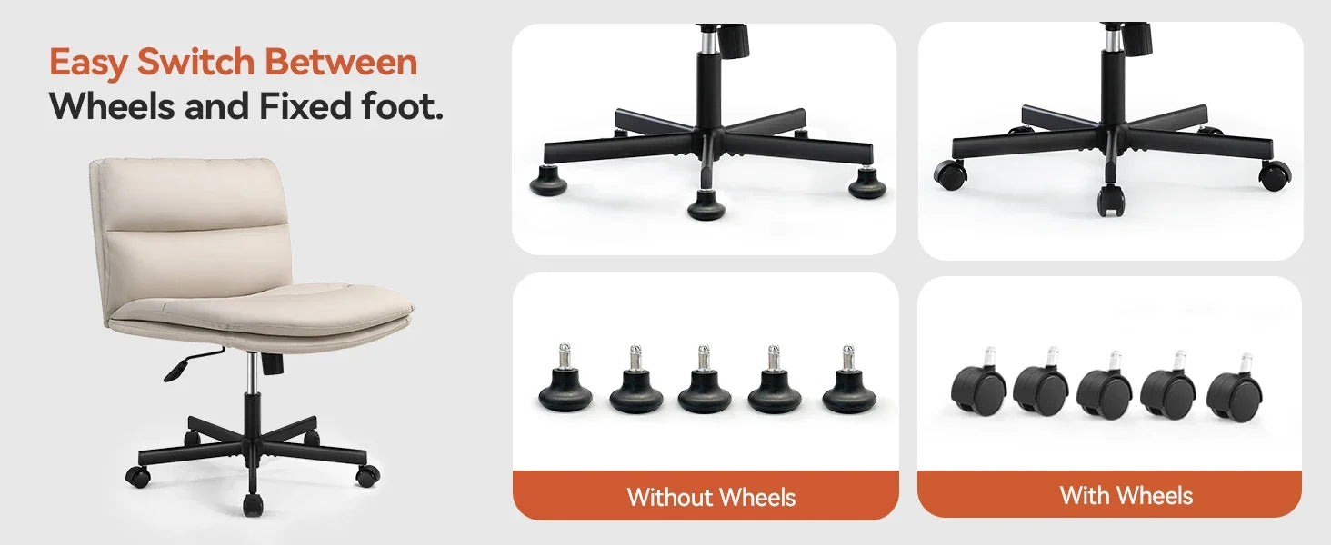 PU Upholstered Dressing Chair, Mid-back Ergonomic Home Office Computer Chair, Comfortable Adjustable Swivel Work Chair
