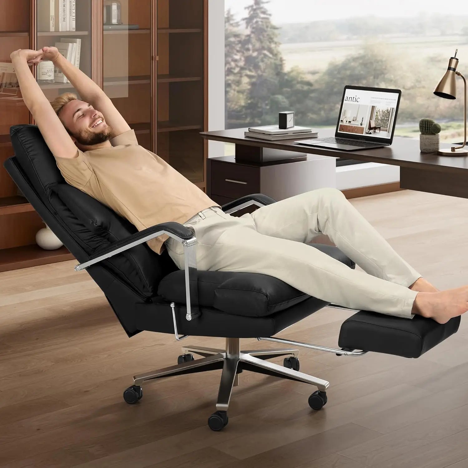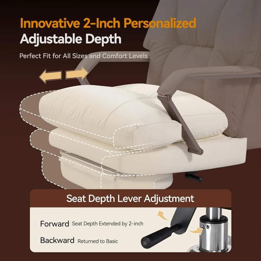 Reclining Office Chair with Footrest - 25.6" Wide Seat & Adjustable Seat Depth, Big and Tall High Back Leather Executive Home