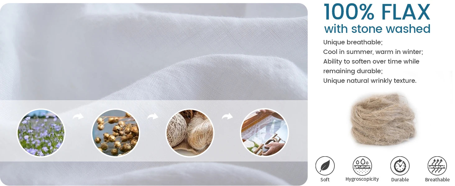 Simple&Opulence 3/4 Pcs 100% Bed Linen Sheet Set Embroidery Washed Natural French Flax Soft Breathable Comforter Sheets Sets