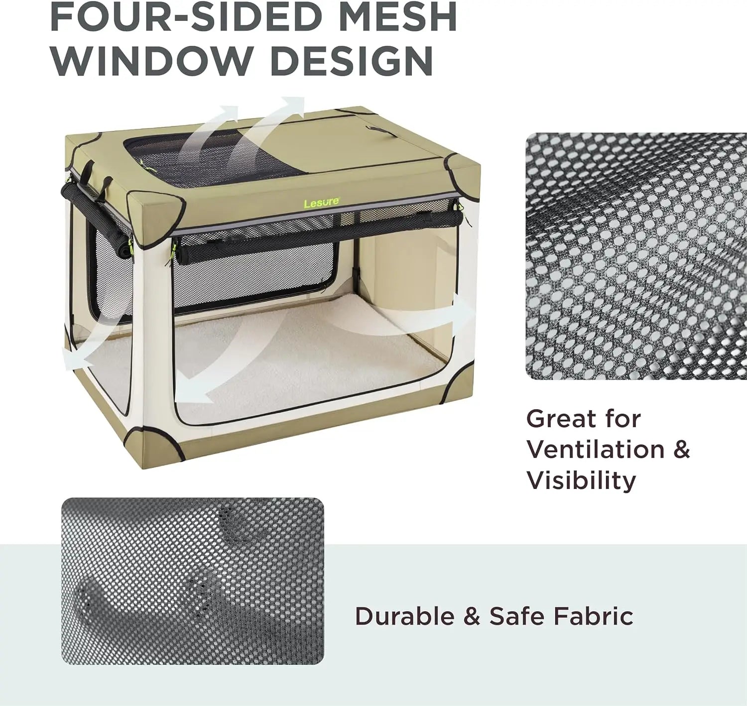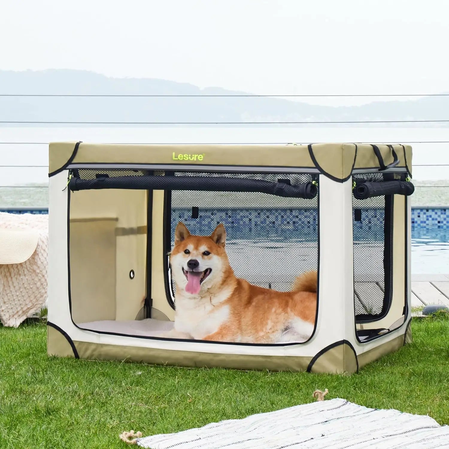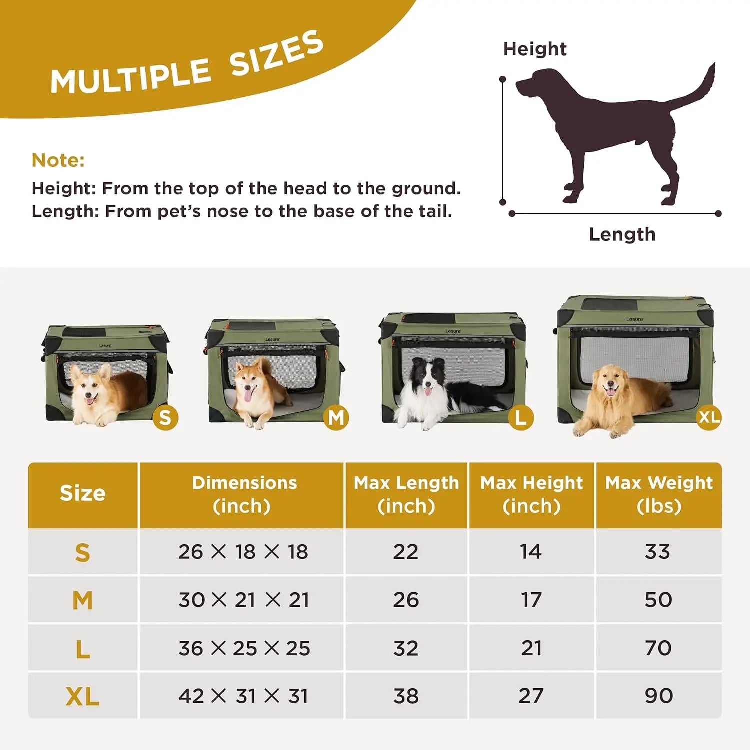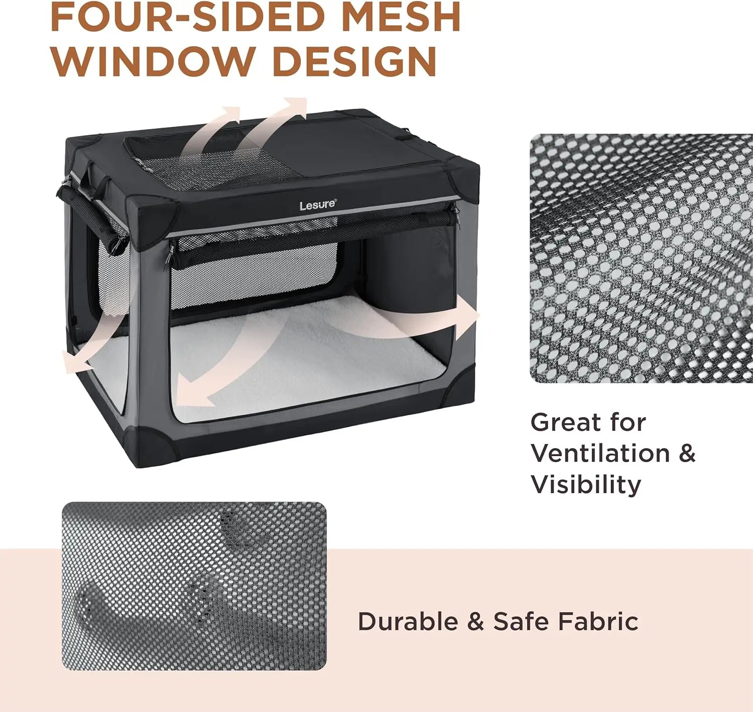 Soft Collapsible Dog Crate - 42 Inch Portable Travel Dog Crate for Extra Large Dogs Indoor & Outdoor, 4-Door Foldable