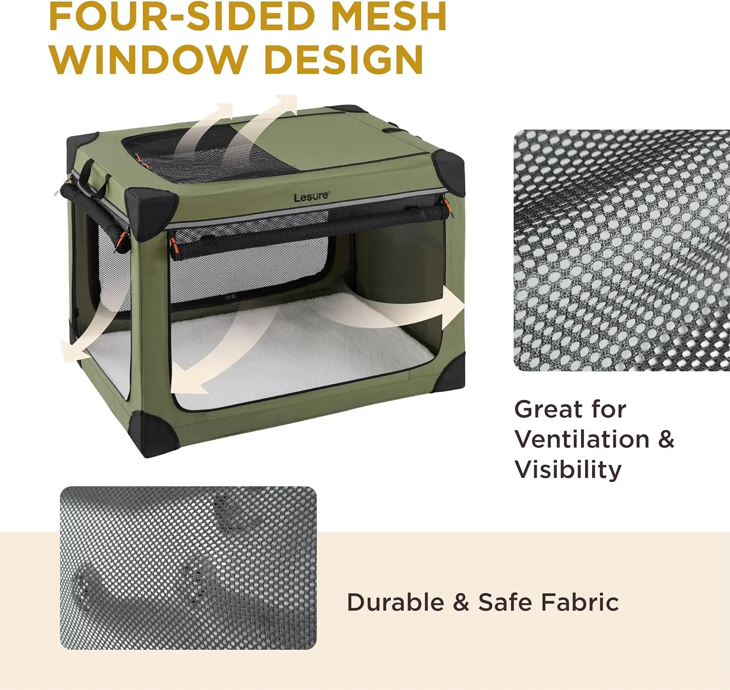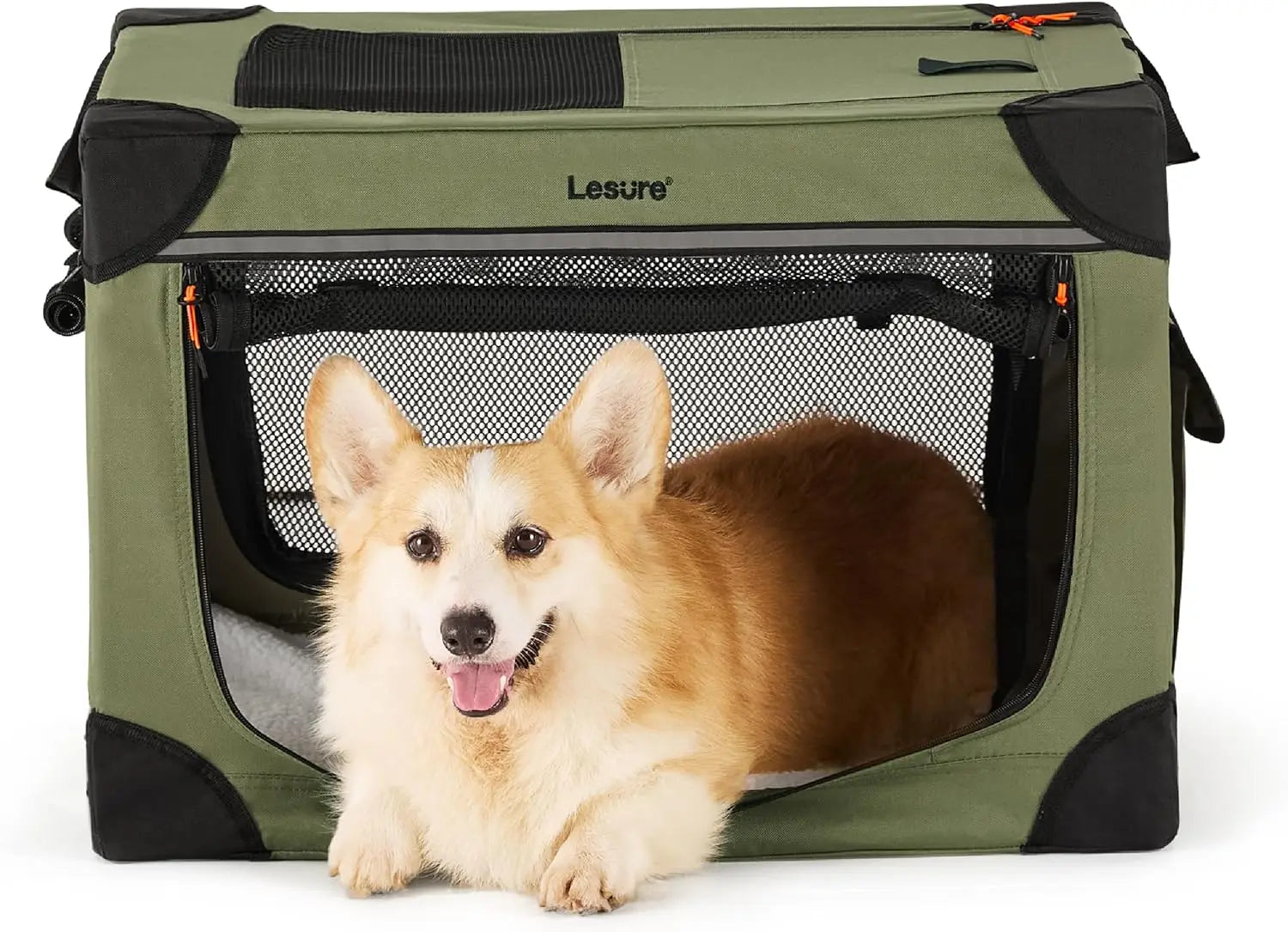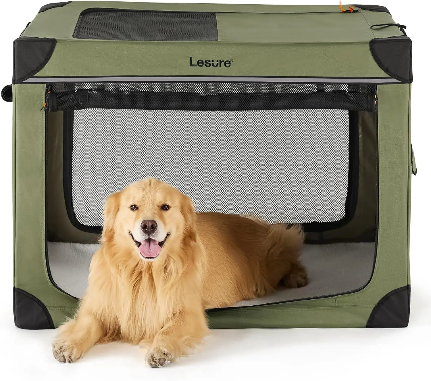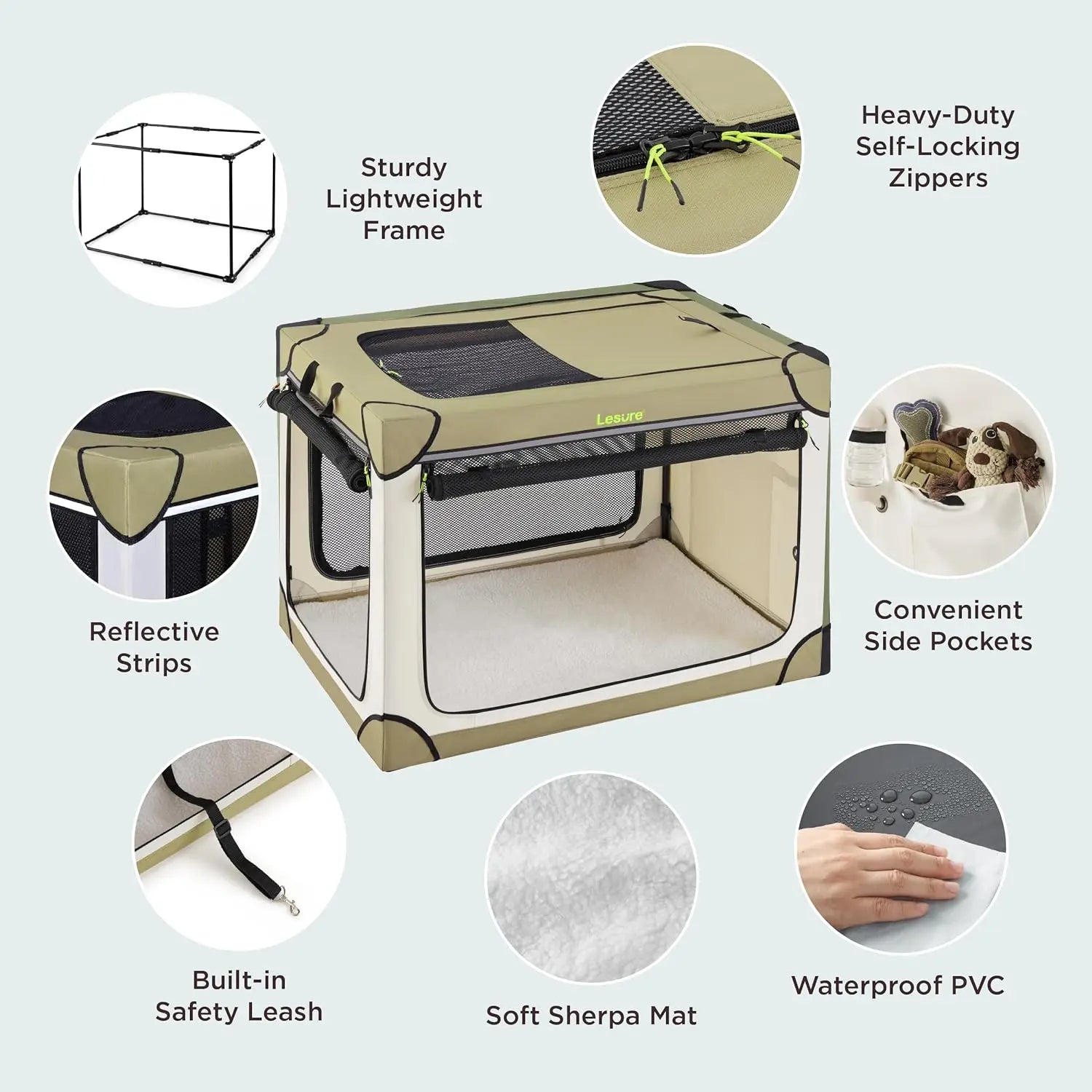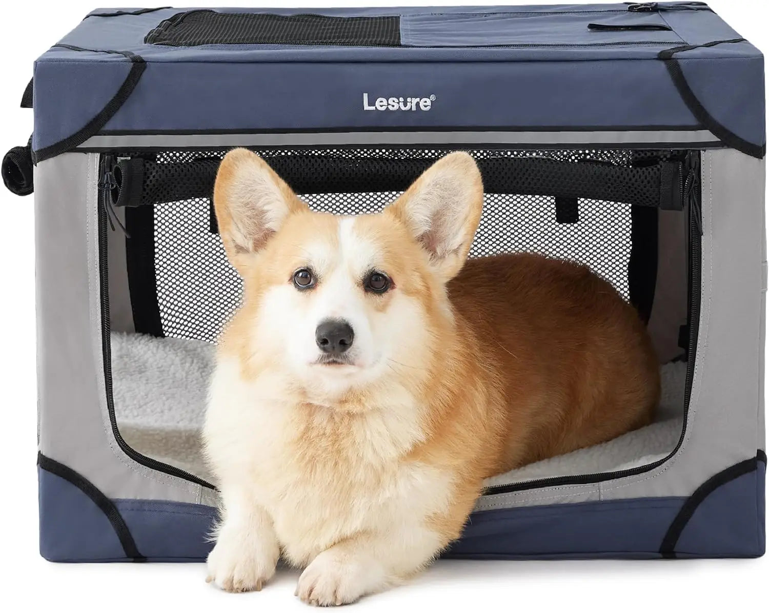 Soft Collapsible Dog Crate - 42 Inch Portable Travel Dog Crate for Extra Large Dogs Indoor & Outdoor, 4-Door Foldable