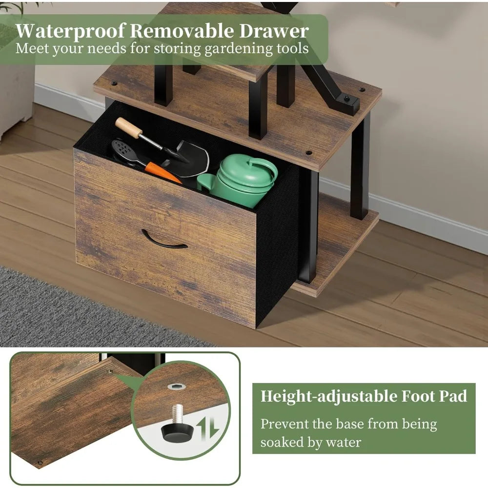 Stand Indoor with Grow Lights - 8 Tiered Plant Shelf with Storage Drawer, 65' Tall Plant Shelf with Grow Light & 2 Hooks, Co