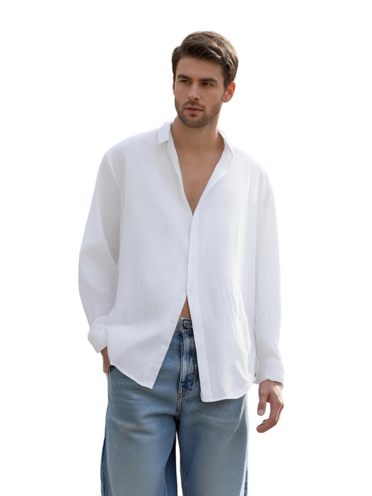 Stylish Men s Button Up Shirt with Long Sleeves and Turn Down Collar in Trendy Solid Color Design for Casual Wear