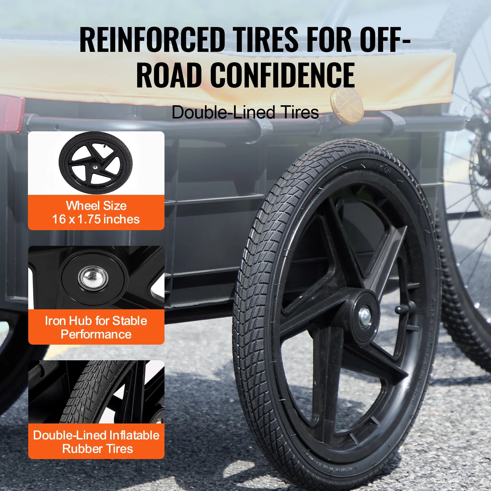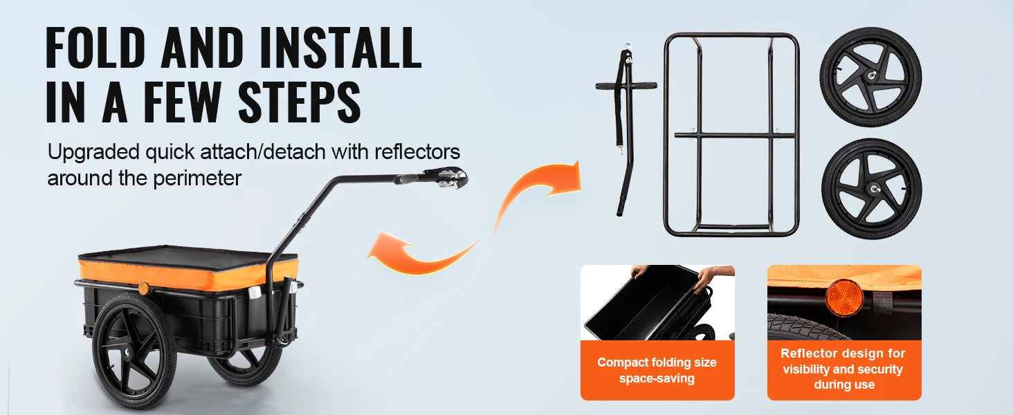 SucceBuy 88Lbs Bike Cargo Trailer Bicycle Wagon Cart Foldable Storage with 16" Wheels & Safe Reflectors Fits 24"-28" Bike Wheels