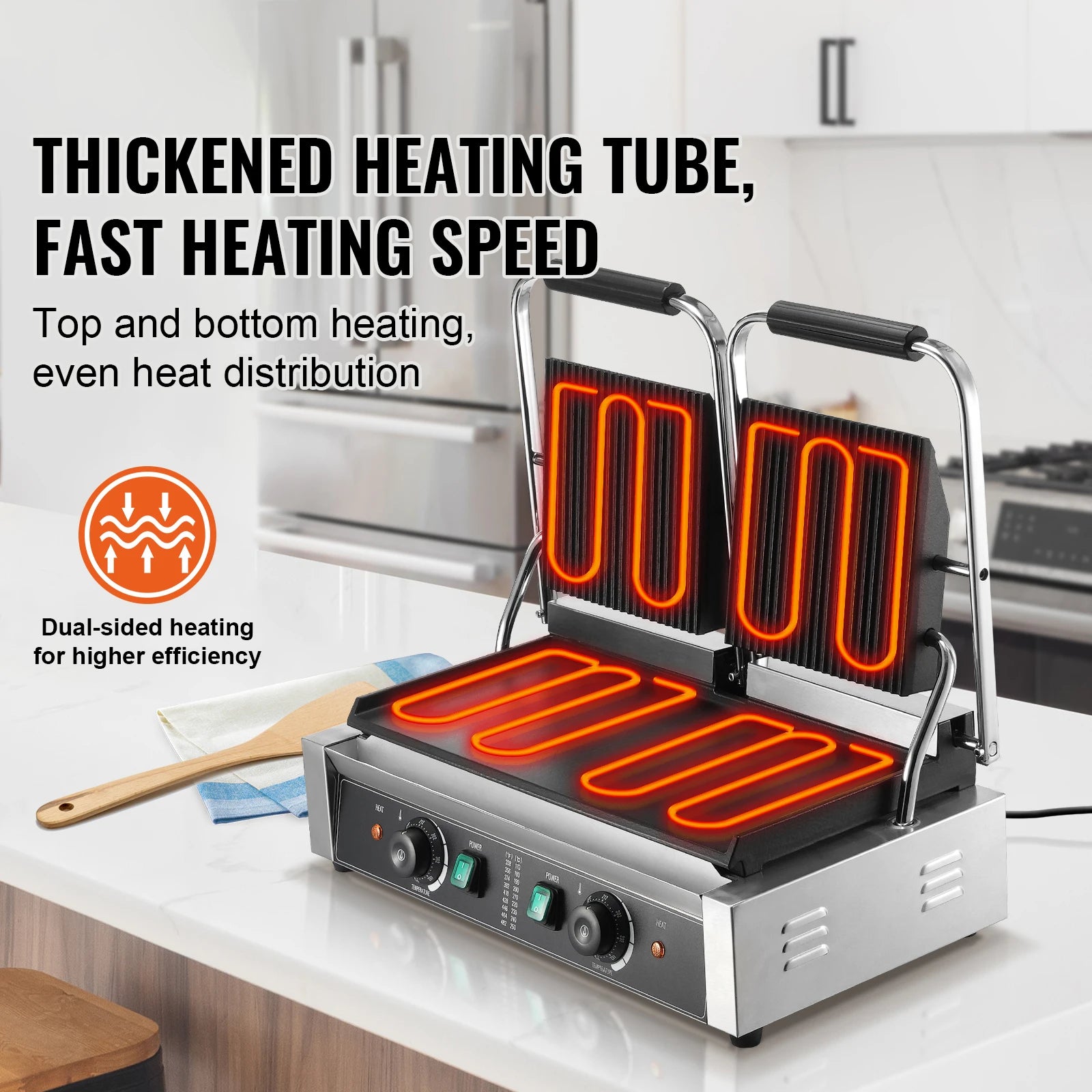 SucceBuy Commercial Panini Grill 3600W Electric Sandwich Panini Maker with Temp Control And 19"x9" for Hamburger Steak Bacon