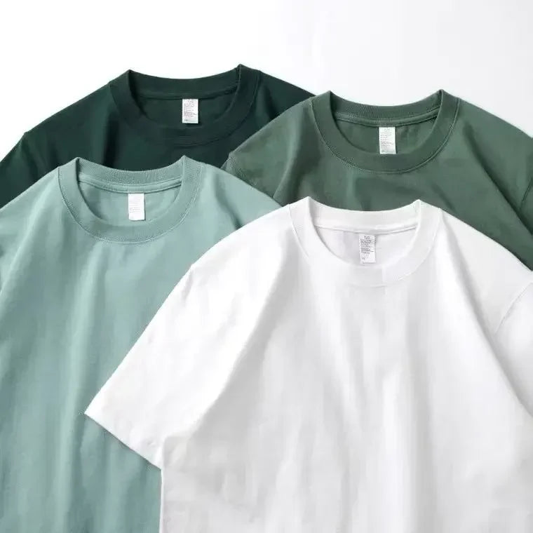Summer Men Women Green T-shirt 100% Pure Cotton Short-sleeved Top Korea T-shirt Green Cotton Half-sleeve T Shirt Streetwear
