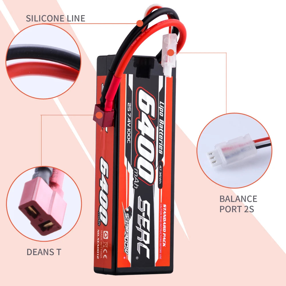 SUNPADOW 2S 3S 4S Lipo Battery for 6400mAh 7.4V 11.1 EC5 Plug 100C for RC Car Plane DJI Truck Tank Buggy Racing Boat Models 2pcs