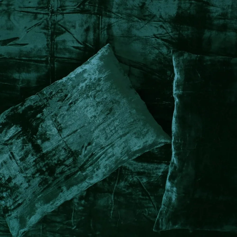 Ultra Luxury Rayon Velvet Boho Duvet Cover Set - Solid Dark Green Oversized King Size Bedding Comforter Cover