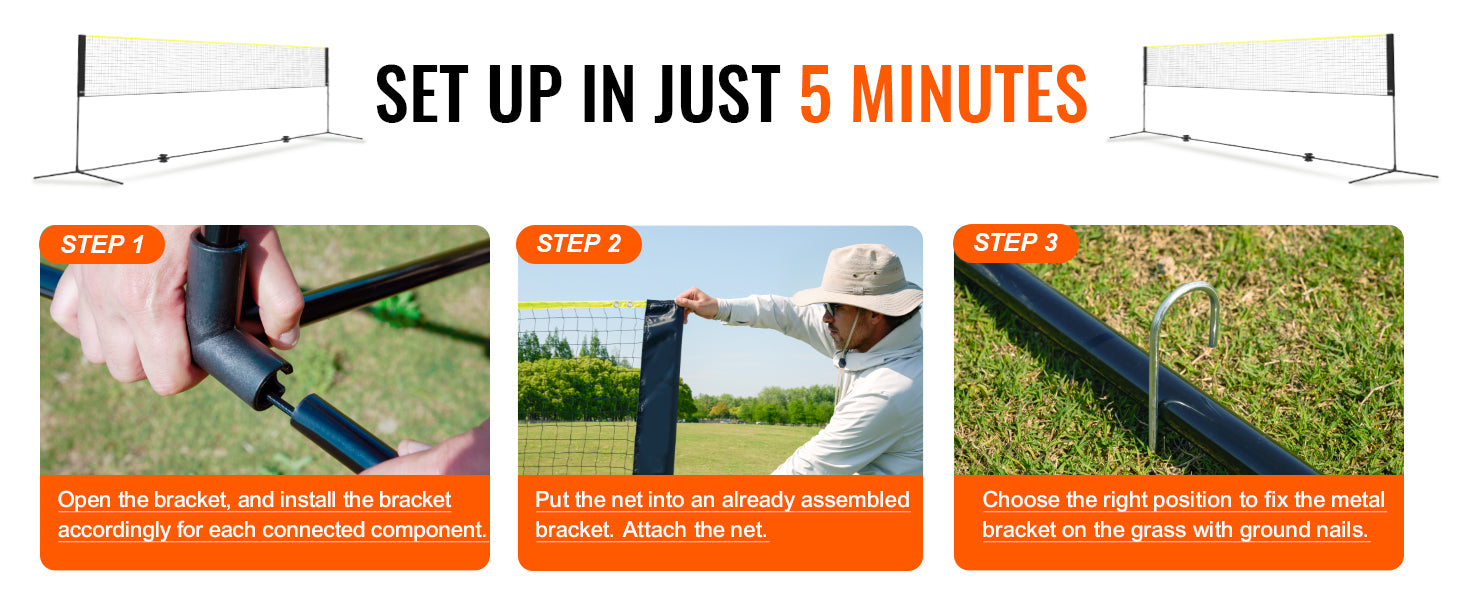 VEVOR 20FT Badminton Net Height Adjustable Volleyball Net Wide Foldable Pickleball Net Portable Tennis Net Set with Poles Stand