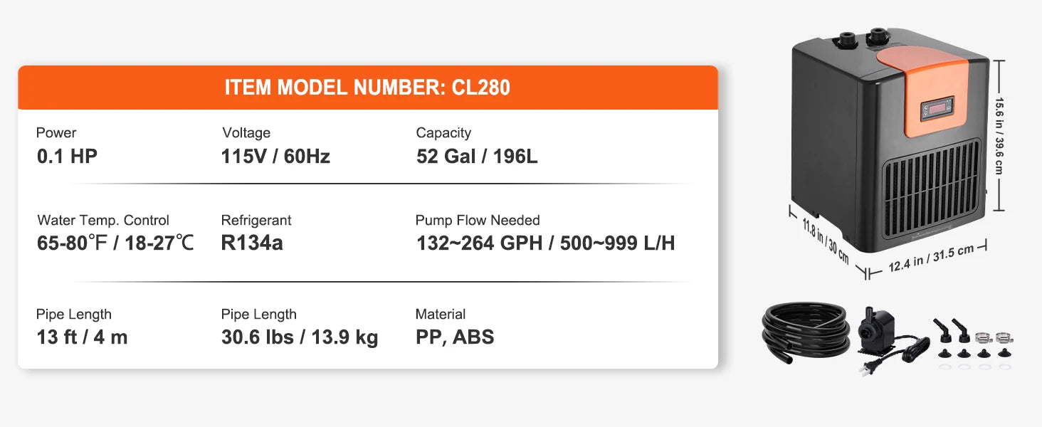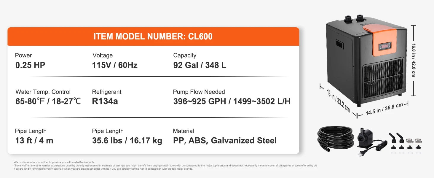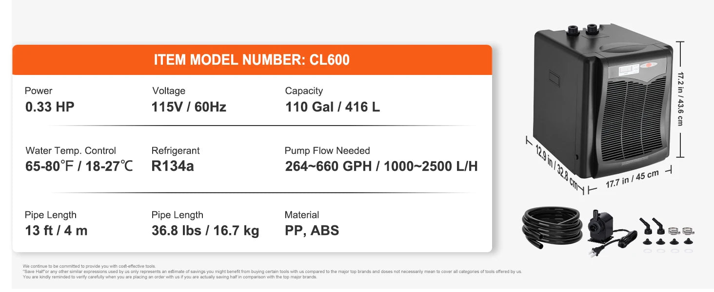 VEVOR Aquarium Chiller 0.25/0.33/0.1/1.5HP Hydroponic Water Chiller Quiet Refrigeration Compressor for Fresh Water Fish Tank