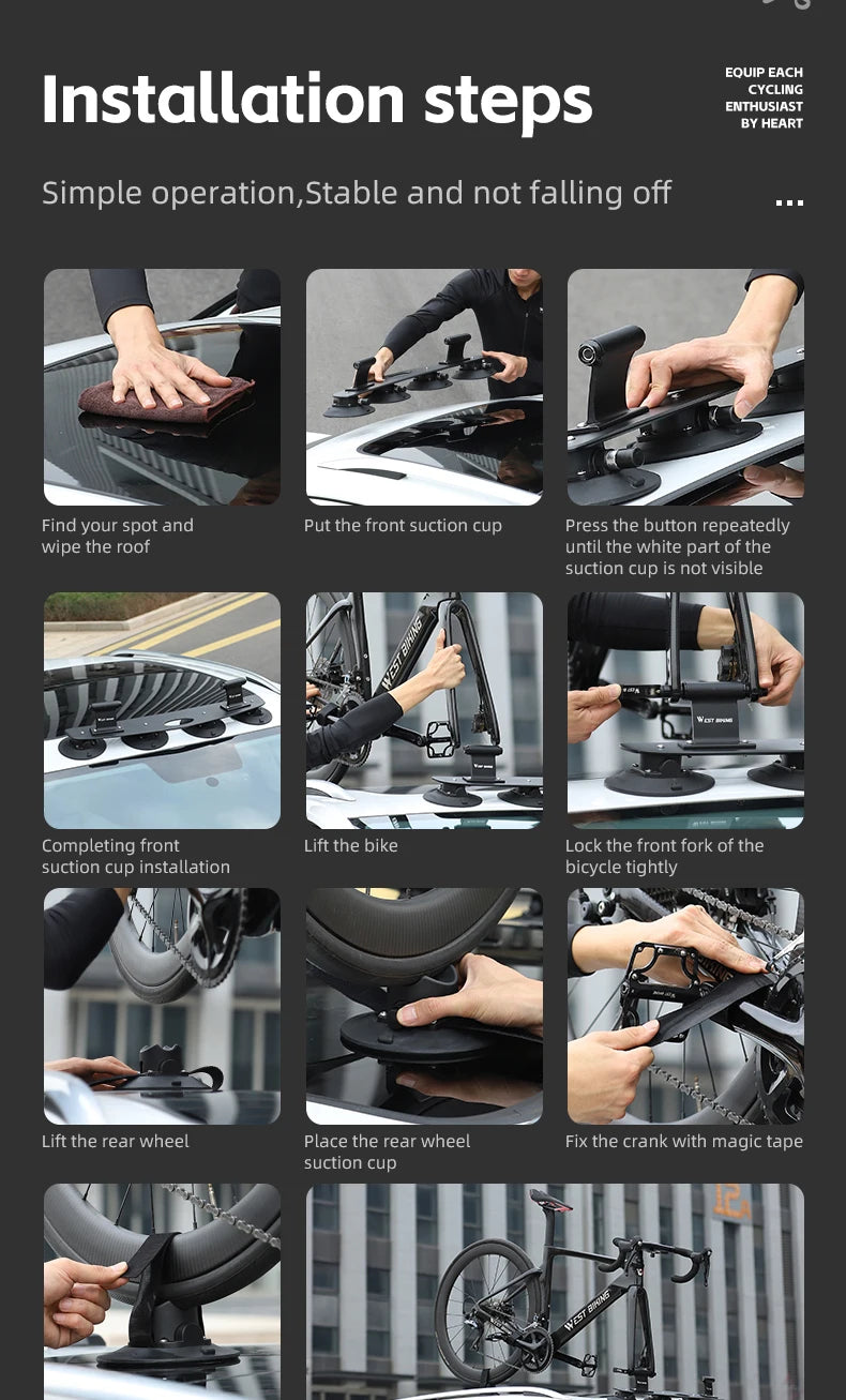 WEST BIKING Car Roof Vacuum Suction Cup Bicycle Racks Cycling Tour MTB Road Bike Quick Release Car Carrier Top Parking Racks