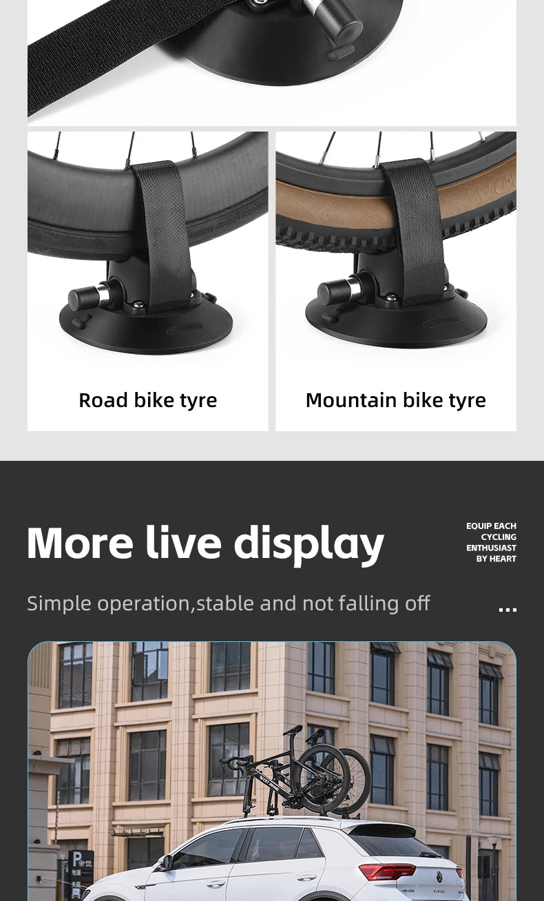 WEST BIKING Car Roof Vacuum Suction Cup Bicycle Racks Cycling Tour MTB Road Bike Quick Release Car Carrier Top Parking Racks