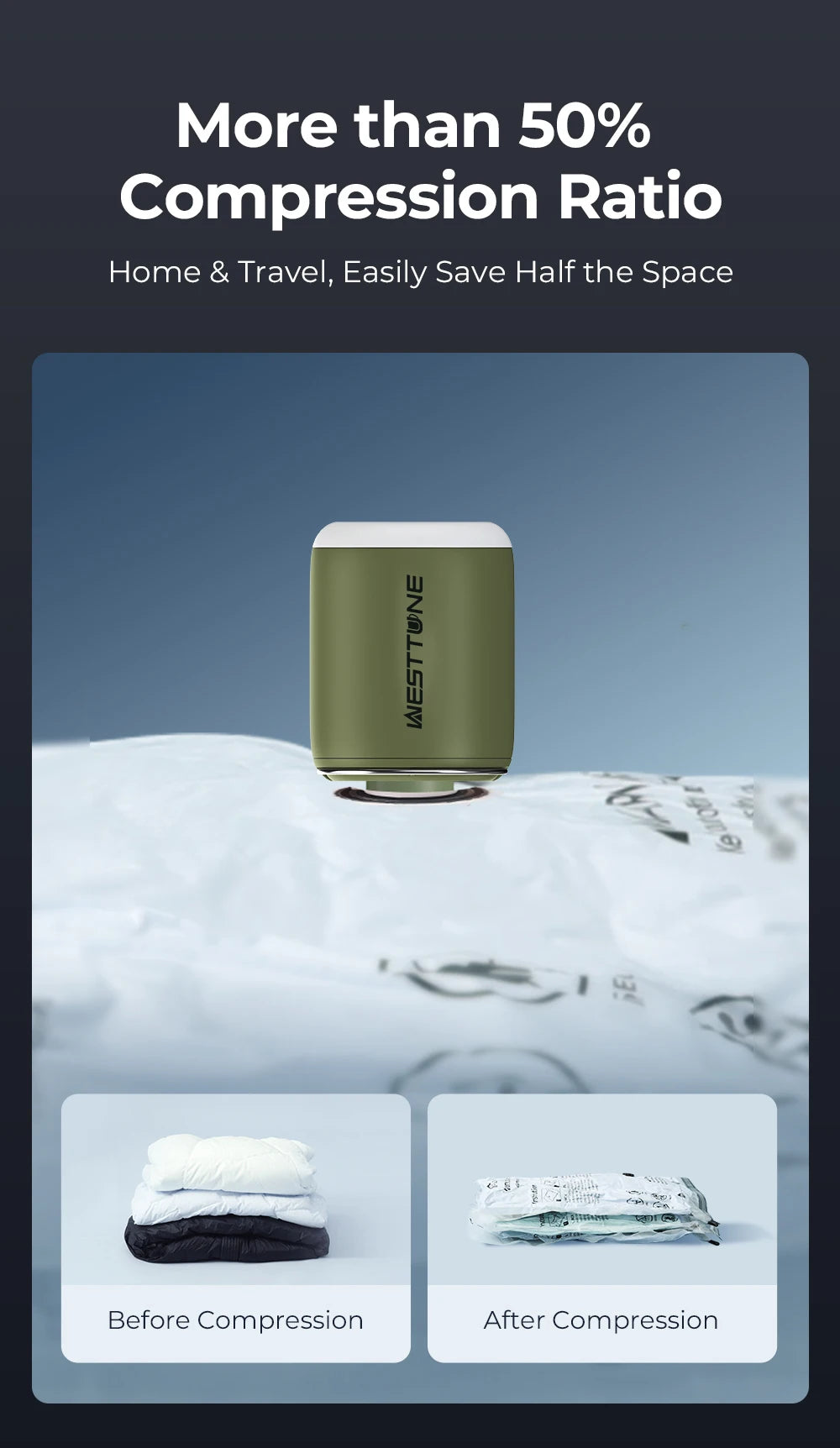 WESTTUNE Tiny Air Pump with Camping Lantern 4.5kPa Air Pump with Magnetic Design for Inflatable Air Mattress Sleeping Pads