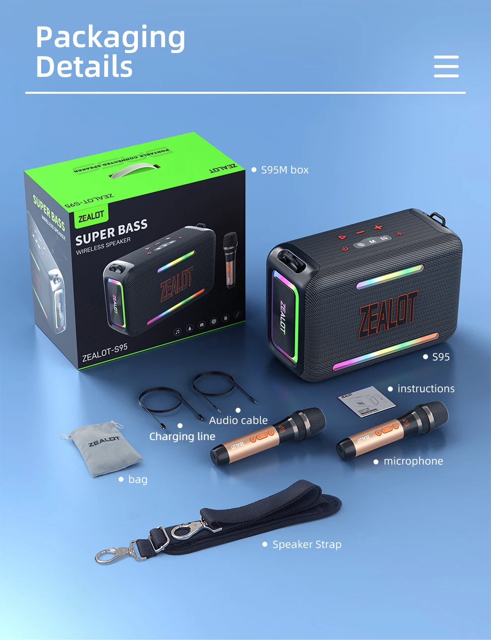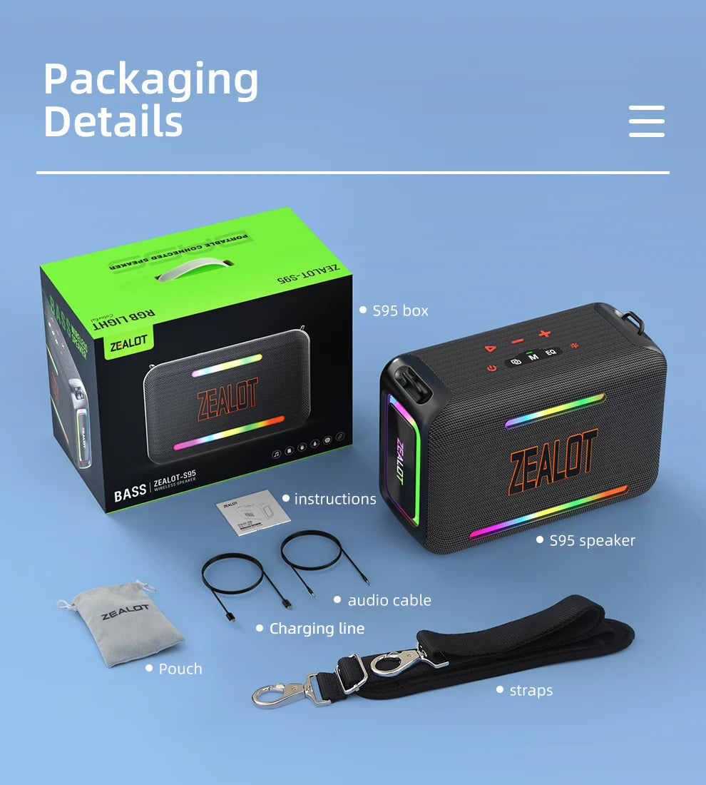 ZEALOT-S95 120W Waterproof Portable Loud Bluetooth Speaker, Wireless Outdoor Boombox SubwooferTriple Passive Radiators-Deep Bass