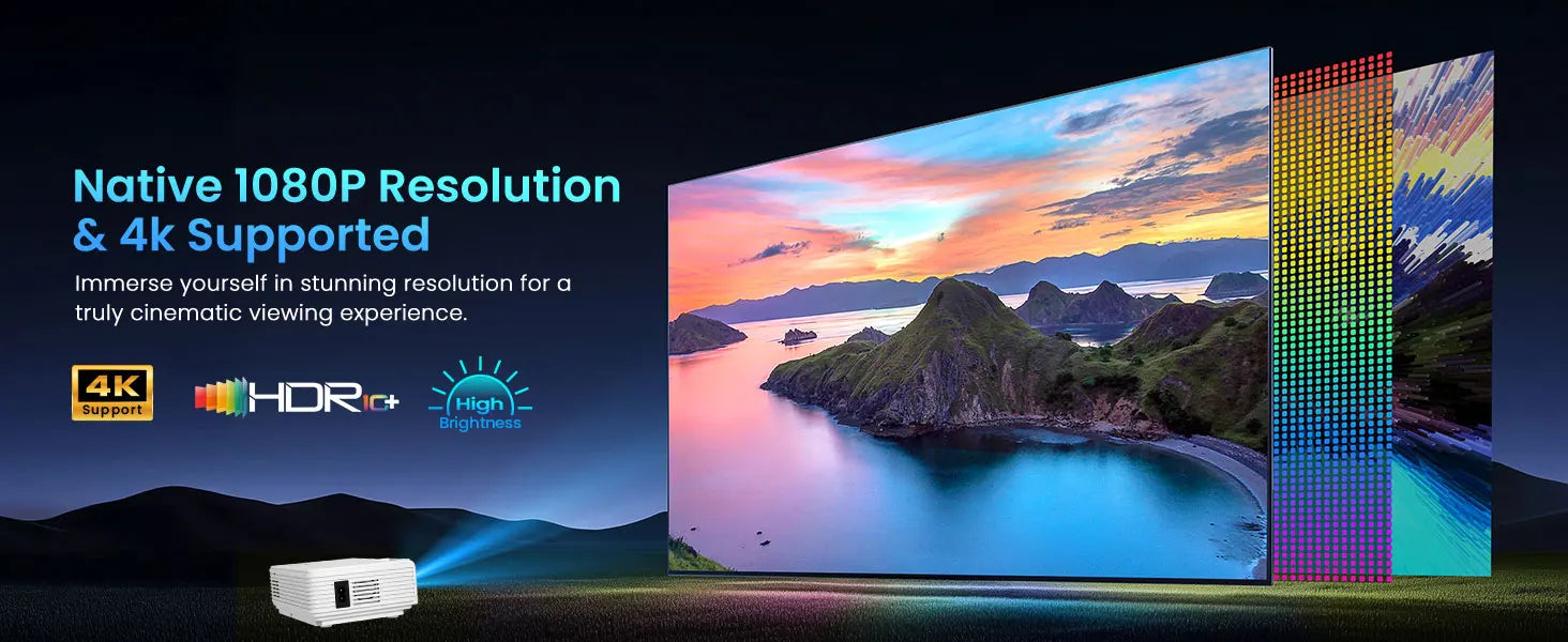 ZRZTM HD 4K video Projector Portable Mini 1080P projecter with HDMI USB Wireless for TV/home theater/gifts/outdoor watch movie